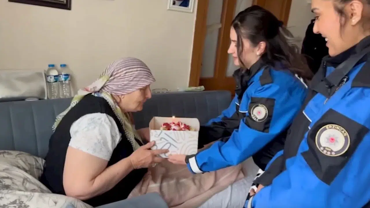 Fatih Mahallesi’nde, 708'inci Sokak’ta oğlu, gelini ve torunuyla yaşayan bedensel engelli Suzan Güneş, 112 Acil Çağrı Merkezi’ni arayıp, doğum günü olduğunu belirterek, polislerle bir arada olmayı istediğini söyledi. Güneş’in bu isteği, İl Emniyet Müdürlüğü’ne iletildi. Bunun üzerine Toplum Destekli Polislik Şube Müdürlüğü personeli, aldıkları pastayla Suzan Güneş’i ziyaret etti. Güneş, kendilerine gösterilen ilgi üzerine duygulandı, gelen ekibe teşekkür etti. (DHA)