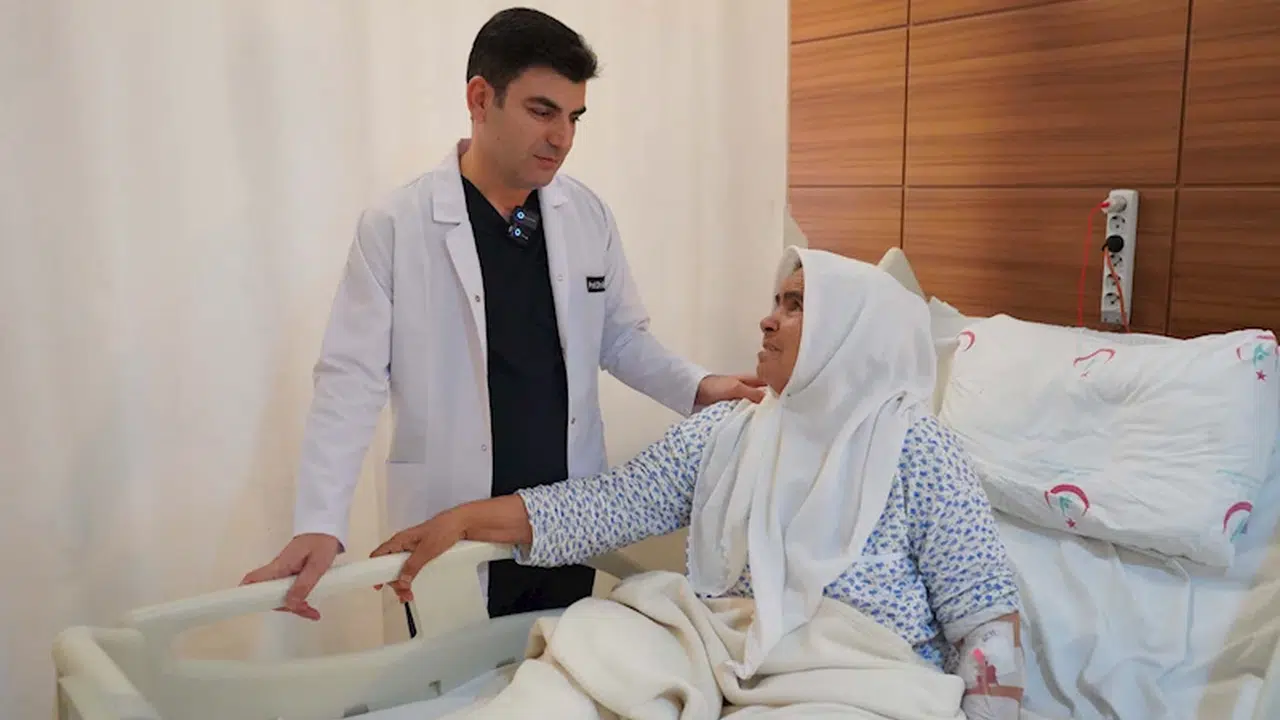 Nefes darlığı ve yürüyememe şikayetleri artan Hacer Koyun (79) durumu ağırlaşınca Adıyaman Eğitim ve Araştırma Hastanesi'ne başvurdu. Kardiyoloji Kliniği Şefi Prof. Dr. Arif Süner ve ekibi tarafından yapılan tetkiklerin ardından yaşlı hastanın aort kapağında daralma olduğu tespit edildi.