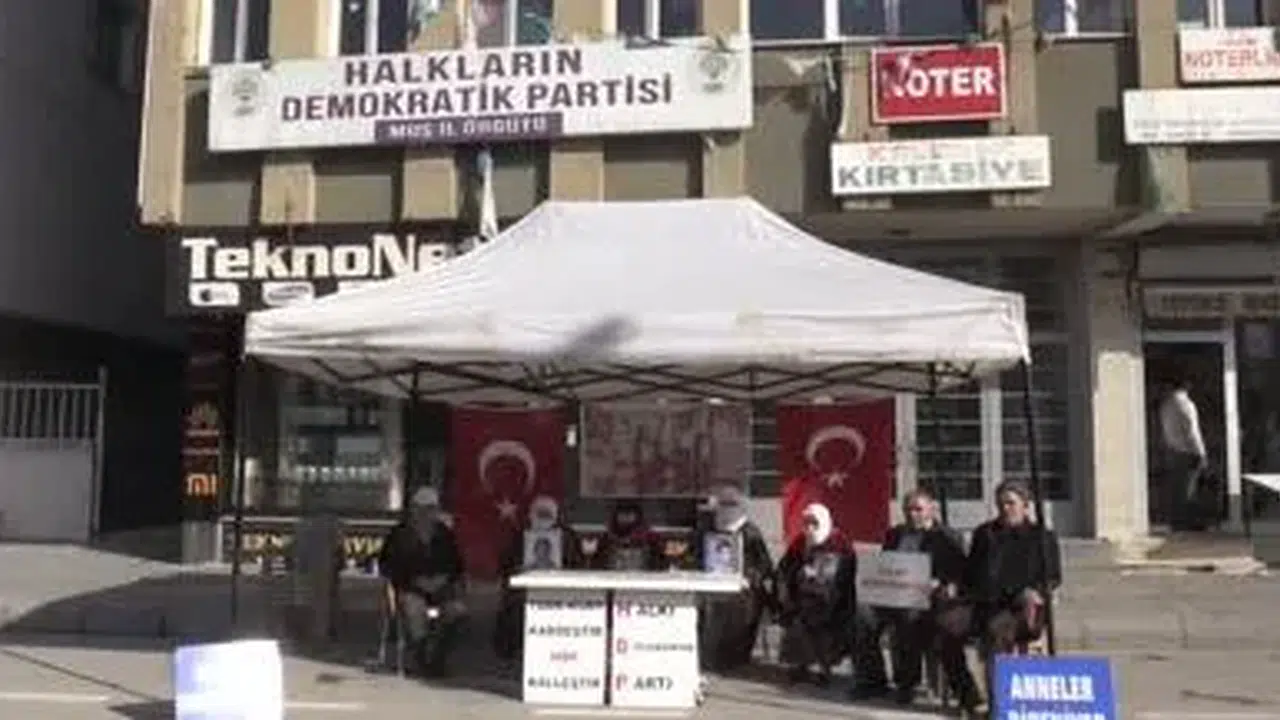 Muş'ta çocuklarının terör örgütü PKK tarafından dağa götürülmesinden HDP'yi sorumlu tutan aileler, partinin il başkanlığı binası önündeki oturma eylemini sürdürüyor.