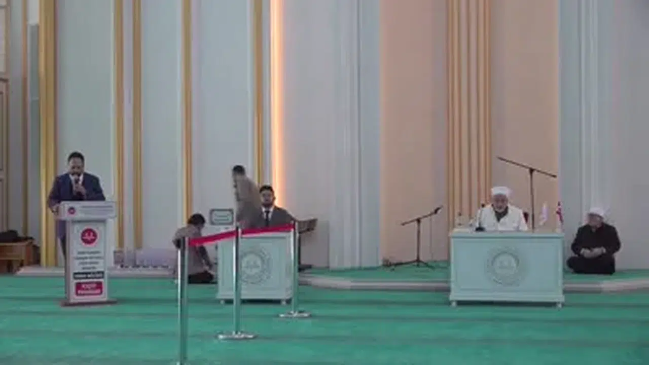 Diyanet İşleri Başkanlığı Mushafları İnceleme ve Kıraat Kurulu Başkanı Kurra Hafız Osman Şahin de merasimde bir konuşma yaptı.