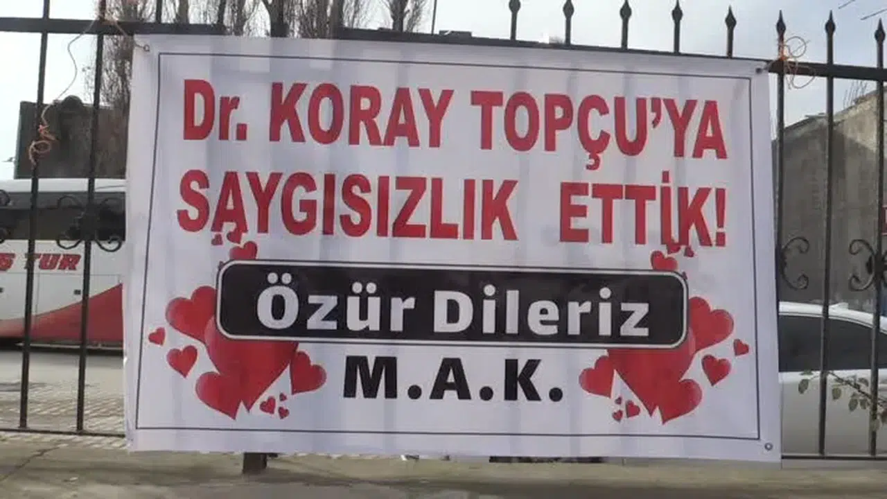 Olayın ardından yaptığından pişman olan hasta ve yakını, bir gün sonra merkeze giderek Topçu'dan özür diledi, Toplum Sağlık Merkezi'nin bahçe duvarındaki korkuluklara da "Dr. Koray Topçu'ya saygısızlık ettik, özür dileriz" yazılı pankart astı.