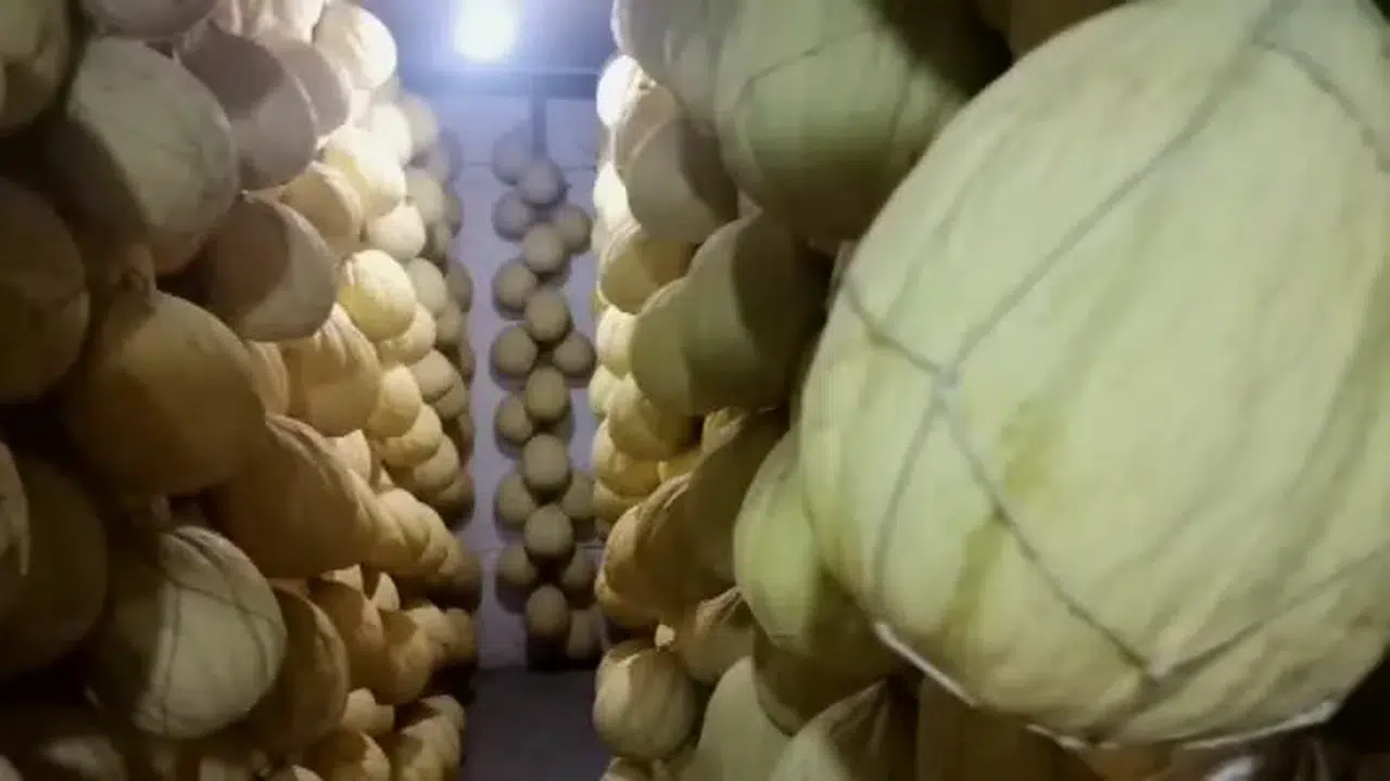Manisa’nın kavunuyla ünlü Kırkağaç ilçesinde ağustosta hasat edilerek depolarda askıya asılan kavunlar, yılbaşı sofraları için hazırlandı.