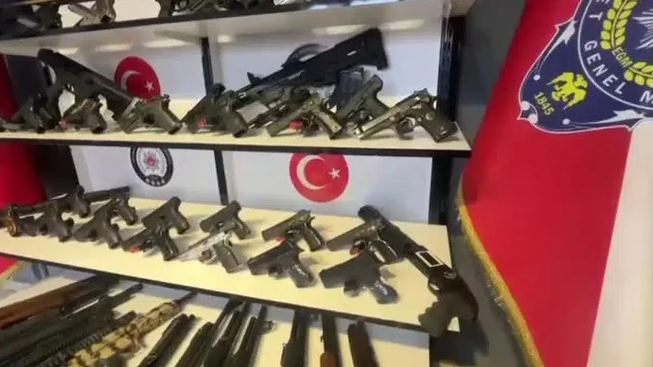 Aramalarda uzi marka makineli tabancanın da arasında olduğu ruhsatsız 42 tabanca ve 18 av tüfeği ele geçirildi, 23 şüpheli gözaltına alındı.