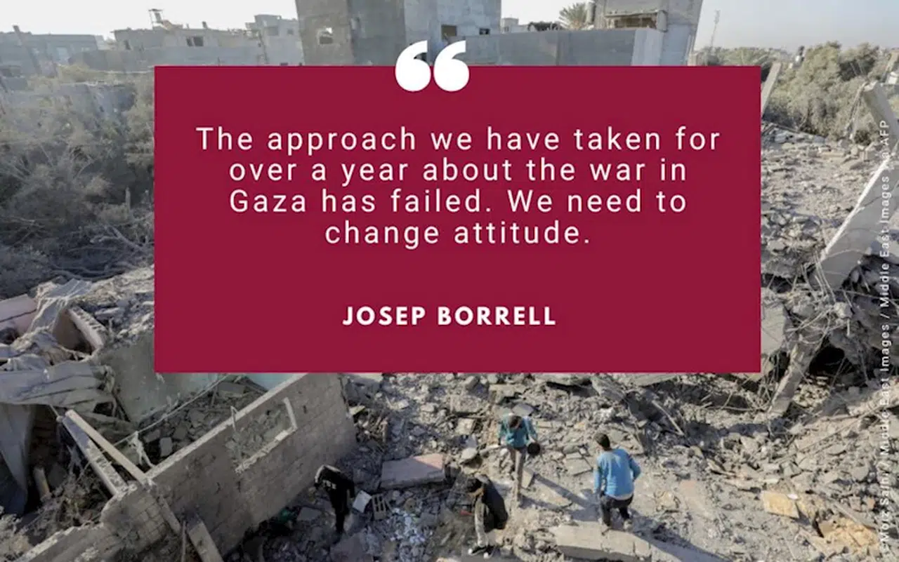 Borrell, 7 Ekim’den bu yana gösterilen tutumun başarısızlıkla sonuçlandığına vurgu yaparak, “İleriye baktığımızda, İsrail hükümetiyle bir yıldan uzun süredir kullandığımız yaklaşımın başarısız olduğunu kabul etmemiz gerekiyor” dedi. Açıklamasında, AB üye devletlerine İsrail ile siyasi diyalogu kesme önerisiyle ilgili olarak ise, “ AB insan hakları özel temsilcisinden, yakında Üye Devletlerimize sunacağım İsrail'in AB ile Ortaklık Anlaşması'na uyumuna ilişkin bir değerlendirme talep ettim. Bu değerlendirmeye dayanarak, AB Üye Devletlerine İsrail ile siyasi diyaloğu askıya almalarını önereceğim. Bir yıl boyunca dikkate alınmayan ricalardan sonra, her zamanki gibi işimize devam edemeyiz” ifadelerini kullandı.