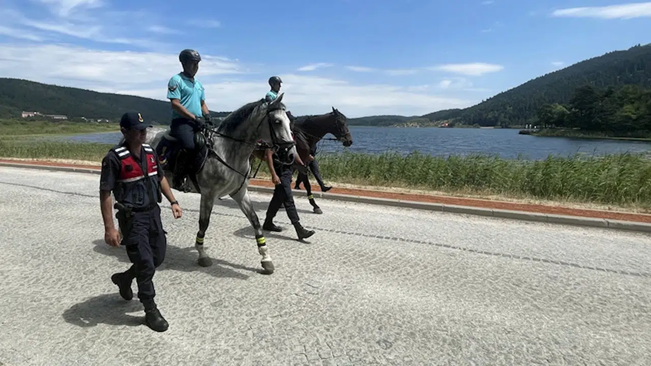 Göl çevresi, yürüme alanları, piknik yerleri ve ormanlık alanlarda dolaşan atlı timler, ziyaretçileri ateş yakılmaması ve kurallara uyulması konusunda uyarıyor.
