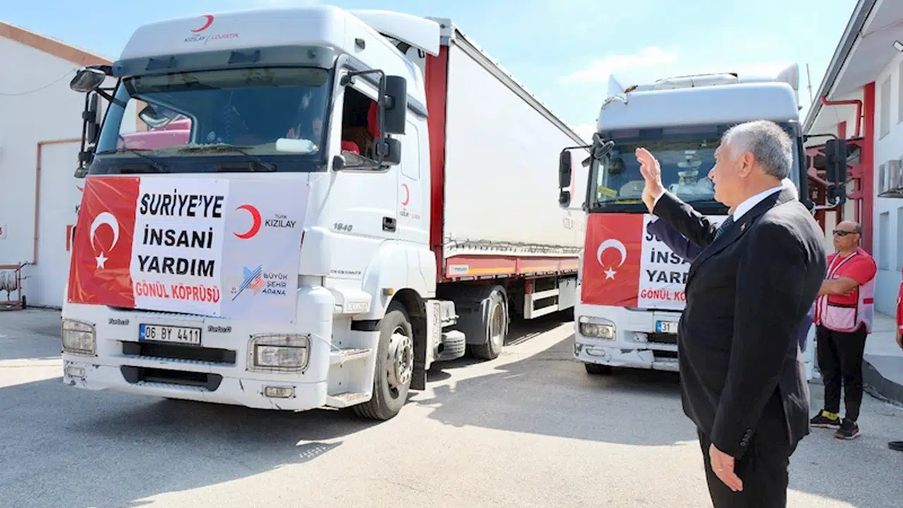 Türk Kızılay Adana Bölge Afet Yönetimi Müdürlüğü bahçesinden yola çıkarılan konvoyu; Adana Büyükşehir Belediye Başkanı Zeydan Karalar, Türk Kızılayı Genel Sekreteri Ramazan Saygılı, her iki kurumun bürokrat ve çalışanları uğurladı. Suriye’deki ihtiyaç sahiplerine el atmak için Kızılay olarak harekete geçtiklerini belirten Ramazan Saygılı, “Hemen yanı başımızdaki komşu Suriye’deki insani krize, mübarek cuma günü el atmak için, Kızılay dostu kıymetli Zeydan Başkanımız öncülüğündeki desteğe, ev sahipliği yapıyoruz. Bugün nasip olursa insani yardım tırlarımızı, hijyen malzemelerimizi, destek bekleyen, sıkıntıları olan Suriye’deki mazlumlara ve mağdurlara, ihtiyaç sahiplerine ulaştırmak üzere yola çıkarıyoruz. Suriye’de uzun süren savaş dönemi sona erdi. Milletimizin, Türkiye’mizin, Kızılay’ımızın merhamet eli sürekli üzerlerinde olacak. Adana Büyükşehir Belediyesi’ne ve katkı sağlayanlara müteşekkiriz" dedi.