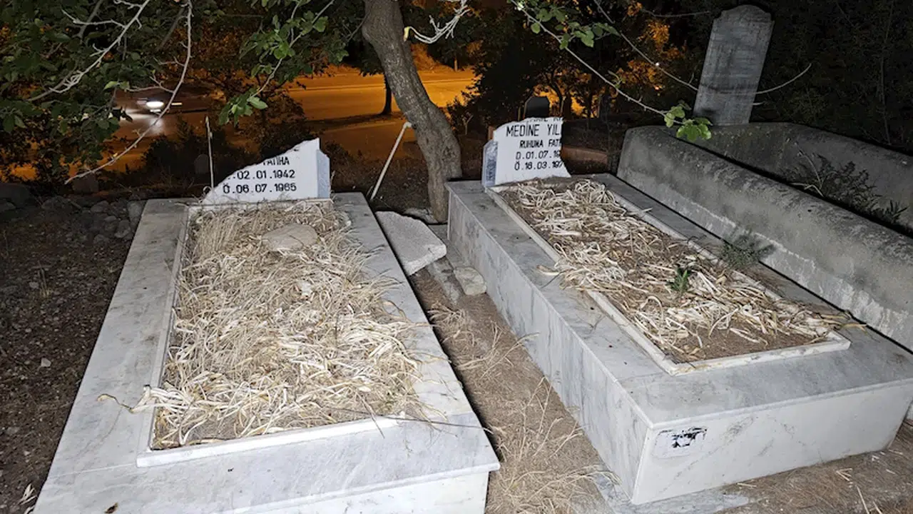 Polis, mezar taşlarına saldırıp, zarar veren kişi ya da kişileri yakalamak için çalışma başlattı. (DHA)