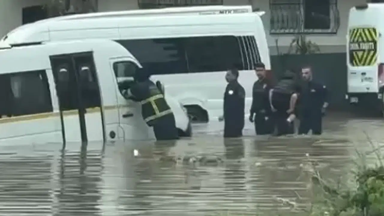 Yusuf YILDIZ-Serhat GÜLER/ADANA, (DHA)- ADANA'da kısa süre etkili olan sağanak nedeniyle bazı cadde ve sokakları su bastı. Su dolu yolda kalan servisteki öğrencileri, itfaiye ekipleri sırtında taşıyarak kurtardı.