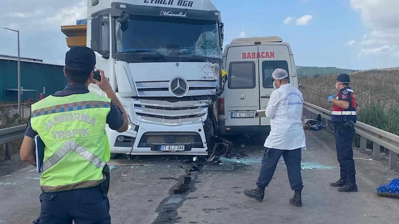 Ceyhun ÖZER/CEYHAN (Adana), (DHA)- ADANA’nın Ceyhan ilçesinde TIR ile işçi servis minibüsünün çarpıştığı kazada 4 kişi hayatını kaybetti, 6 kişi yaralandı.