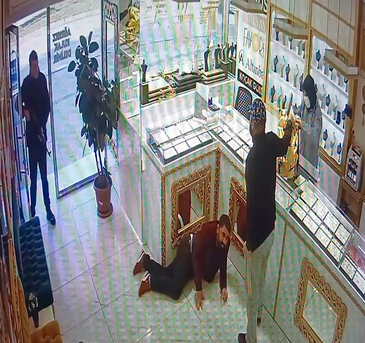 Olay, 20 Aralık’ta saat 10.00 sıralarında, Çukurova ilçesi Mahfesığmaz Mahallesi’ndeki kuyumcu dükkanında meydana geldi. Yüzlerini şapkayla gizleyen İbrahim G., Emirhan K. ile M.Y. iş yerine girip, kuyumcu Hasan Ç. ile çalışanlarına silah doğrultarak, "Kıpırdamayın. Altınları alıp, gideceğiz" dedi. Kalaşnikoflu İbrahim G. kapıda beklerken, Emirhan K. ise tabancayla çalışanları yere yatırıp, başlarında bekledi. M.Y. ise tabancasını tezgaha bırakıp, yaklaşık 3 kilo altını sırt çantasına doldurdu. Altınları topladıktan sonra Emirhan K. ile M.Y. koşarak iş yerinden çıkıp, caddedeki otomobile bindi. İbrahim G. ise onlar uzaklaşana kadar kapıda bekledikten sonra iş yerinden ayrıldı. O anlar, güvenlik kamerasına yansıdı.