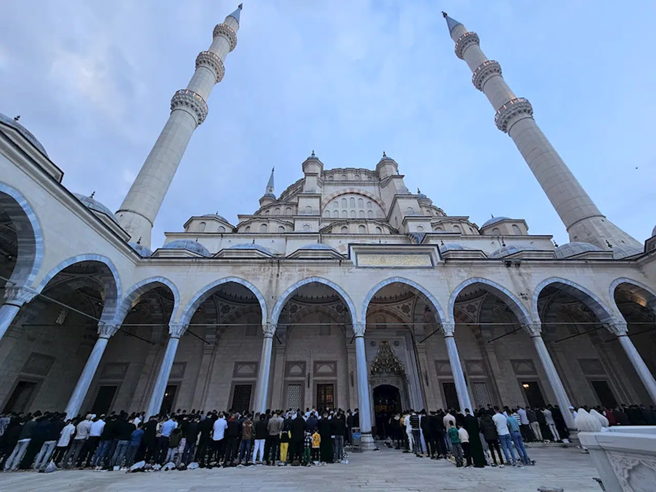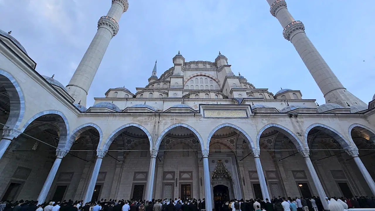 Adana'da binlerce vatandaş, sabahın erken saatinde bayram namazı için Seyhan Nehri kıyısındaki Sabancı Merkez Camii'ne geldi. Kapalı alanı 20 bin kişilik olan cami, Ramazan Bayramı namazı için gelen vatandaşlarca tamamen dolduruldu. İçeriye giremeyenler ise caminin açık alanı olan avlusunda yere serilen hasırların üzerinde saf tuttu. Vatandaşlar, dinledikleri vaazın ardından bayram namazını kıldı. Cami çıkışında vatandaşlar, birbirleriyle bayramlaştı. (DHA)