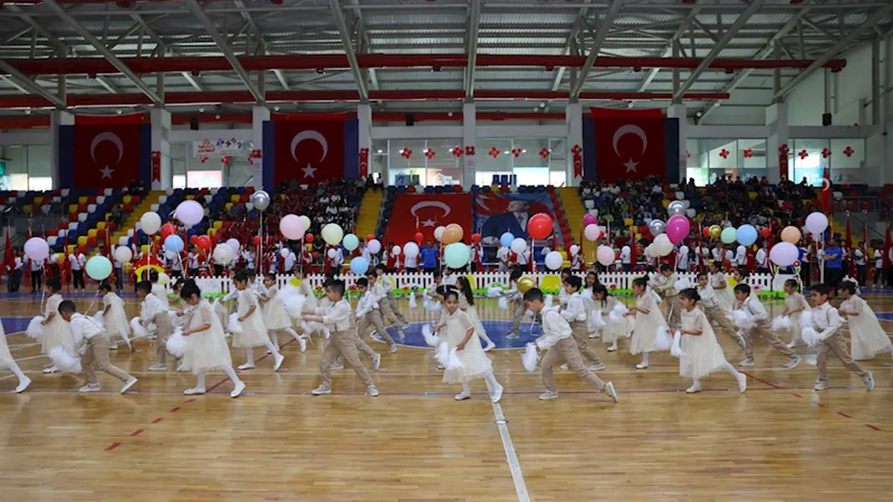 Yeni Mahalle Spor Salonunda kutlanan 23 Nisan Ulusal Egemenlik ve Çocuk Bayramı etkinlikleri kapsamında, öğrenciler tarafından günün anlam ve önemine ilişkin şiirler okunarak çeşitli gösteriler yapıldı.