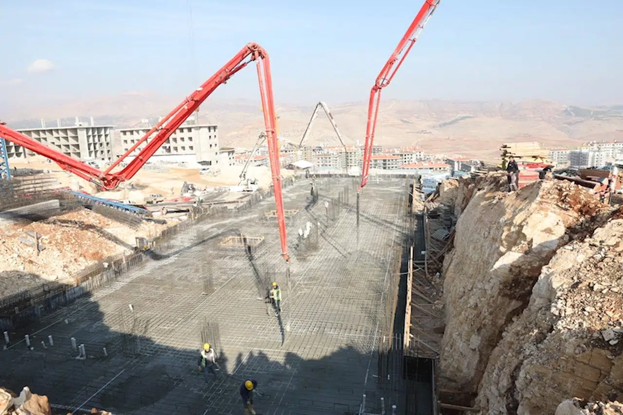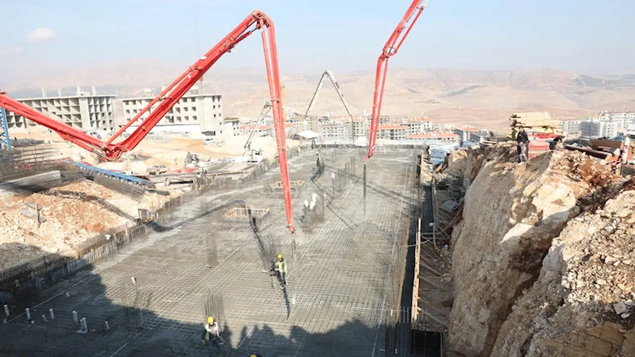 Mahir ALAN/ADIYAMAN, (DHA)-ADIYAMAN'da, 6 Şubat depremi sonrası İndere bölgesinde yapımı devam eden kalıcı konutların bulunduğu alanda 32 derslik 2 okulun temeli atıldı.