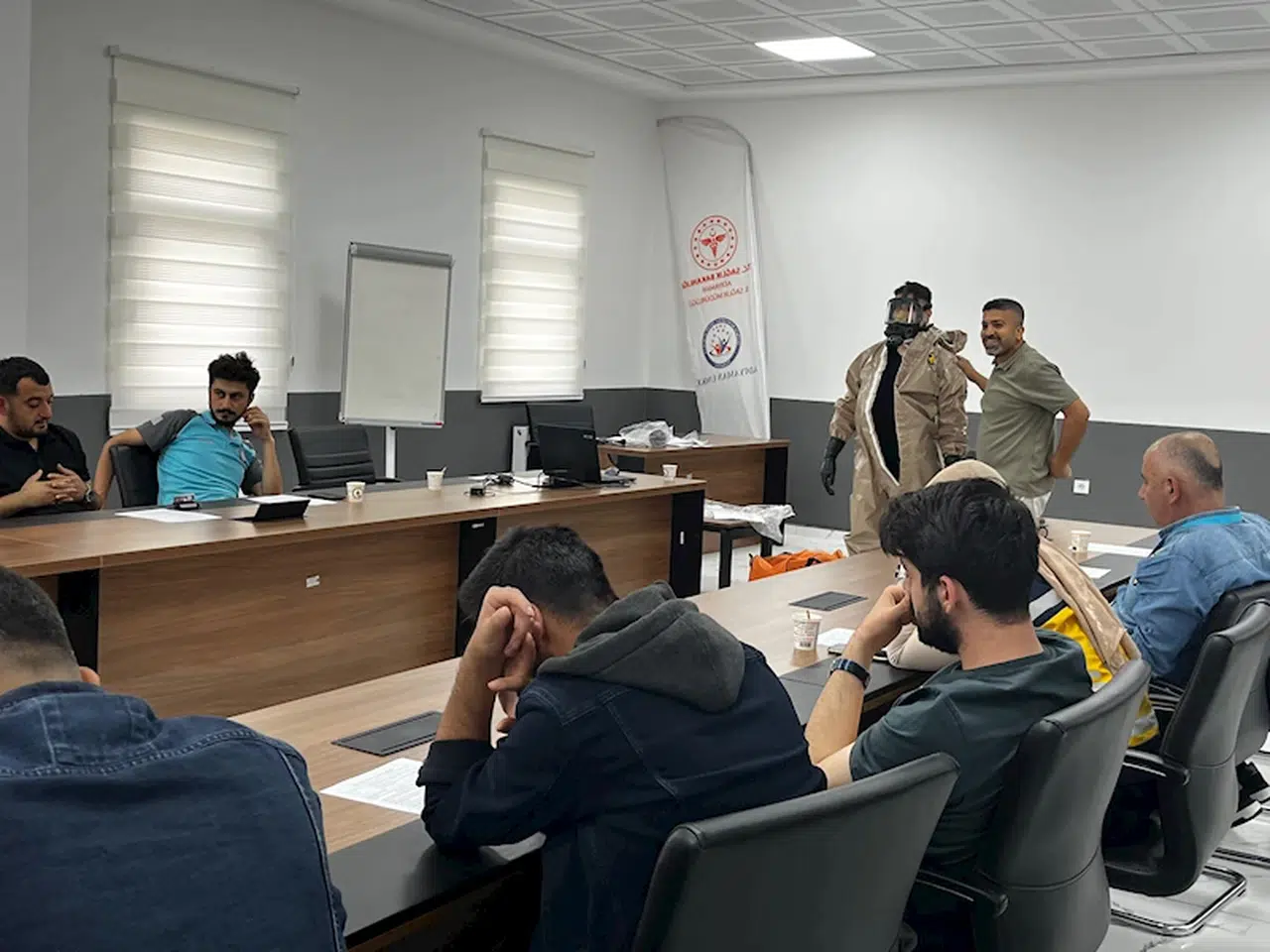 Mahir ALAN/ADIYAMAN, (DHA)-ADIYAMAN İl Sağlık Müdürlüğüne bağlı Sağlık Hizmetleri Başkanlığı tarafından sağlık personellerine yönelik Kimyasal Biyolojik Radyolojik Nükleer Tehditler (KBRN) eğitimleri verildi.