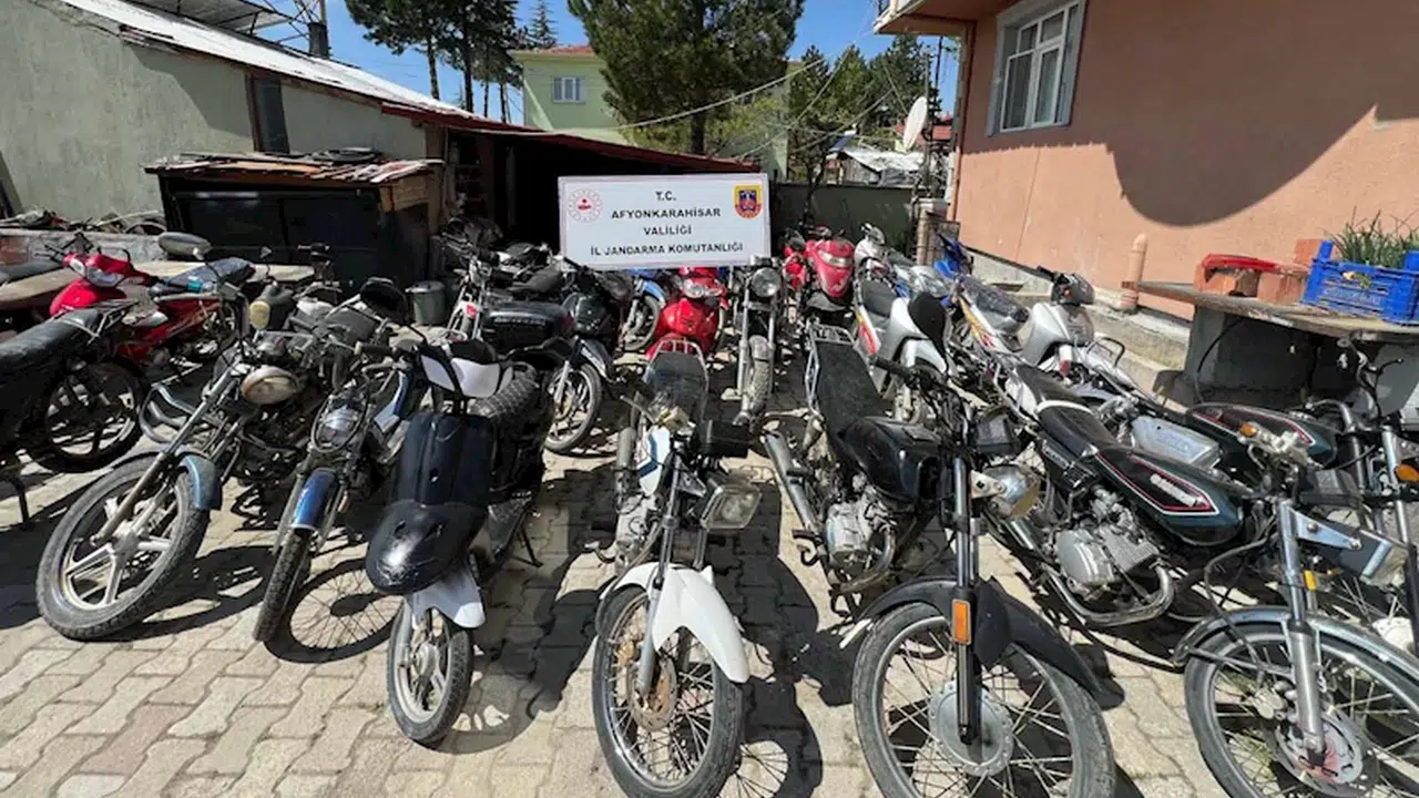 Afyonkarahisar İl Jandarma Komutanlığı ekipleri tarafından Sinanpaşa ilçesi Tınaztepe beldesinde ikamet eden ve motosiklet tamirciliği yapan Y.Ö.'nün hurda veya çalıntı motosikletler üzerinde silinti ve kazıntı yaparak tekrardan satış yaptığı yönünde istihbarat aldı. Şüpheli Y.Ö.'nün işyerinde jandarma tarafından yapılan aramada 10 motosikletin motor ve şasesinde kazıntı, 2 çalıntı motosiklet, 2 motosikletin motor ve şasesinde uyumsuzluk, 14 tescilsiz motosiklet, 16 motosiklet kupası tespit edildi. Ekipler, 44 motosiklet ele geçirdi. Olayla ilgili adli soruşturma başlatıldı. (DHA)