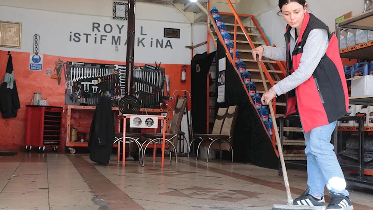 Ağabeyine özenen Melike, forklift servisinde çıraklık yapıyor / Ek fotoğraflar