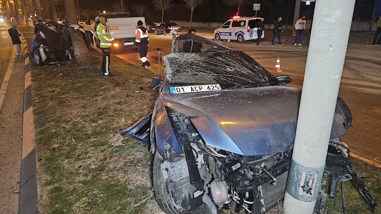 Kaza, saat 22.00 sıralarında merkez Çukurova ilçesi Belediyeevleri Mahallesi, Dr. Sadık Ahmet Bulvarı'nda meydana geldi. Selim K. yönetimindeki 01 ACP 425 plakalı otomobil, sürücüsünün direksiyon kontrolünü yitirmesi sonucu hızla refüjdeki palmiye ağacına çarpıp, ikiye bölündü. Sürücünün de içerisinde otomobilin ön kısmı, refüjdeki aydınlatma direğine çarparak durabildi. Çevredekilerin ihbarı üzerine kaza yerine sağlık ve polis ekipleri sevk edildi. Kazadan hafif yaralı olarak kurtulan ehliyetsiz sürücü Selim K., sağlık ekiplerince hastaneye kaldırıldı.