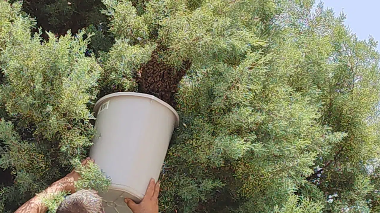 Ali GÖKDAL/KOZAN(Adana),(DHA)- ADANA’nın Kozan ilçesinde bir ağaca oğul veren arılar, yoldan geçen arıcı Levent Erol tarafından kovaya alınıp, kovana taşındı.