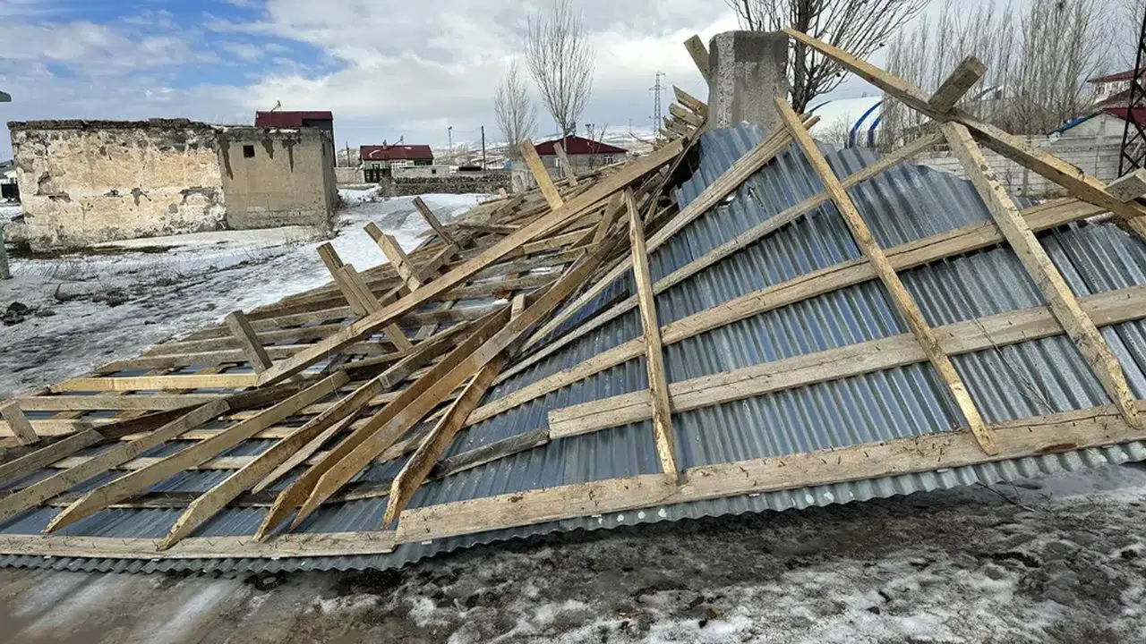 Kuvvetli fırtına nedeniyle ilçe merkezinde Aras Elektrik Dağıtım şirketine ait tek katlı trafo binasının çatısı uçtu.