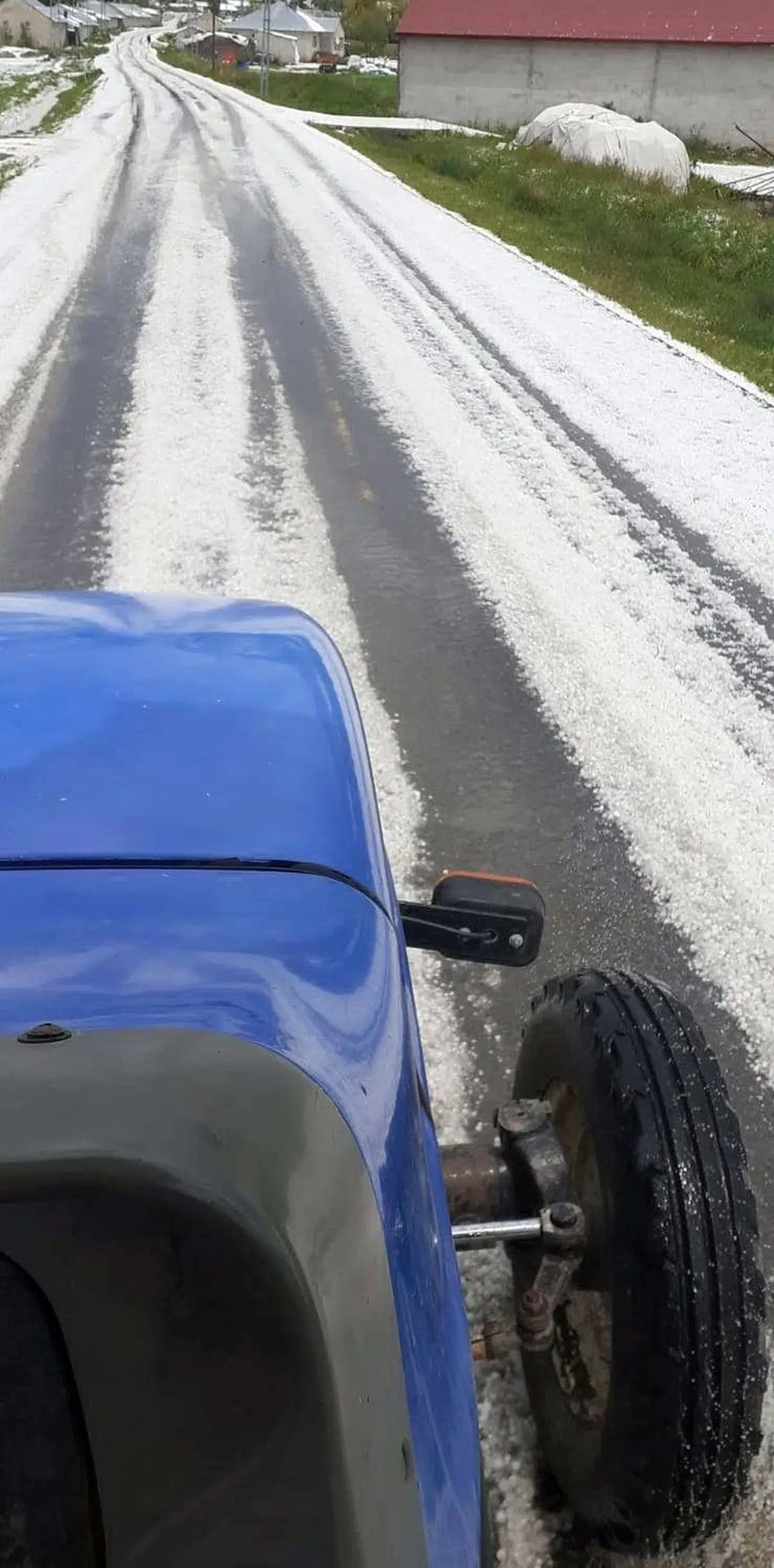 Ayhan İSEN/ELEŞKİRT (Ağrı), (DHA)- AĞRI'nın Eleşkirt ilçesinde öğle saatlerinde etkili olan dolu, ilçe merkezi ve bazı köyleri beyaza bürüdü.