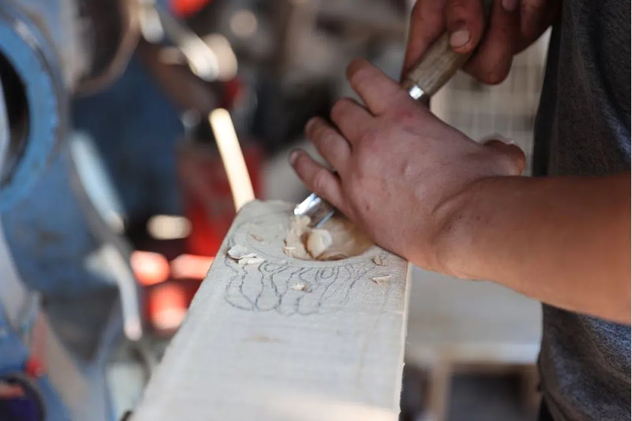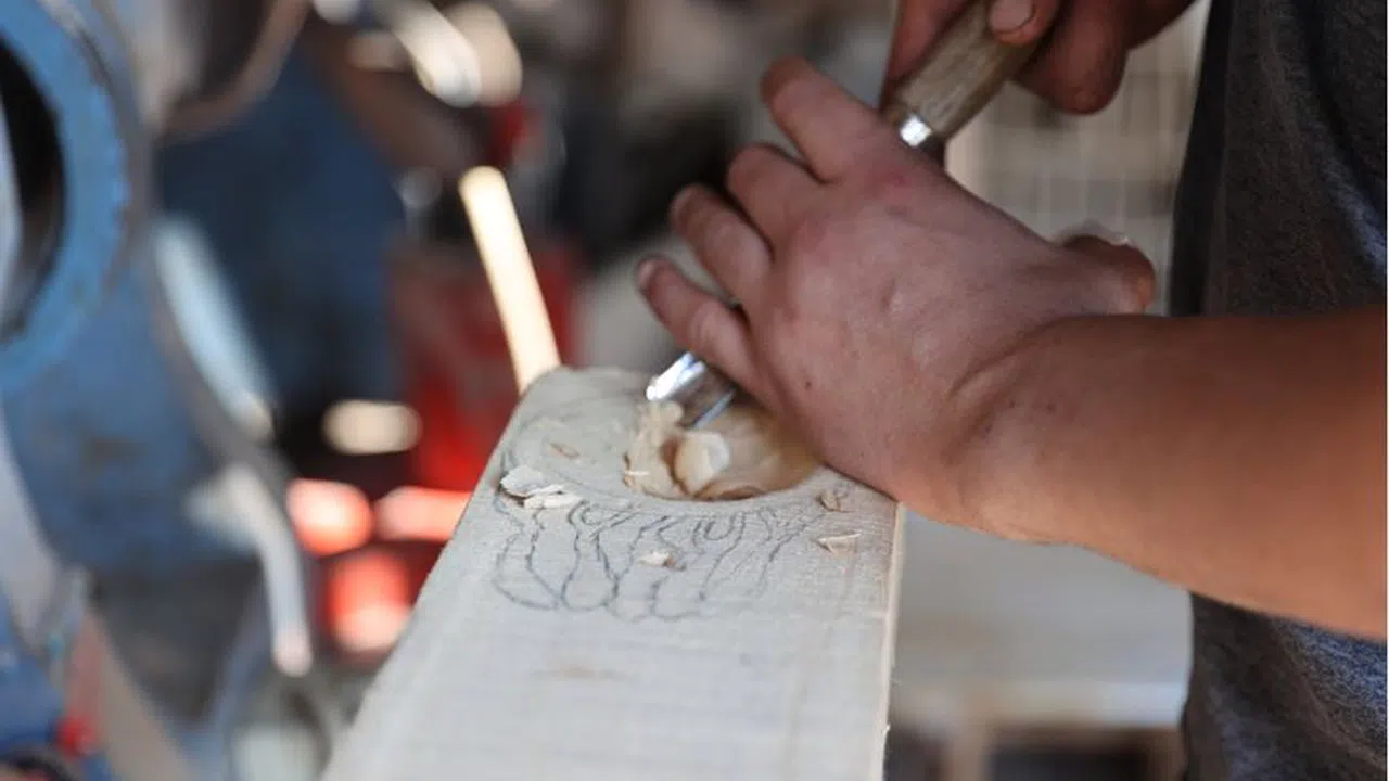 Ahşap oymacılığı meslek edinen genç mutfak gereçleri yapıyor