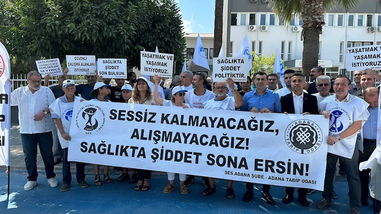 Adana Tabip Odası ve çeşitli sağlık sendikası üyeleri İl Sağlık Müdürlüğü önünde eylem yaptı. Grup adına basın açıklamasını okuyan Adana Tabip Odası Başkanı Dr. Özden Polatöz, Dr. Can Cevher Gürler’in hala yoğun bakım servisinde tedavi gördüğünü anlattı. Gürler, “Kendisine acil şifalar diliyor, bu insanlık dışı saldırıyı şiddetle kınıyoruz. Türkiye’de sağlık çalışanlarına yönelik maalesef her geçen gün artan ve kaygı verici boyutlara ulaşan bir sorundur. Sağlık Bakanlığı verilerine göre, son 5 yılda 30 binden fazla sağlık çalışanı şiddete maruz kalmıştır. Şiddet olaylarının önemli bir kısmı hastanelerde, aile sağlığı merkezlerinde ve acil servislerde yaşanmaktadır. Her gün 100’den fazla sağlık çalışanı sözlü ya da fiziksel saldırıya uğramaktadır. Bu durum, sağlık hizmeti sunan çalışanların güvenli bir çalışma ortamına sahip olmasını imkansız hale getirmektedir” diye konuştu.