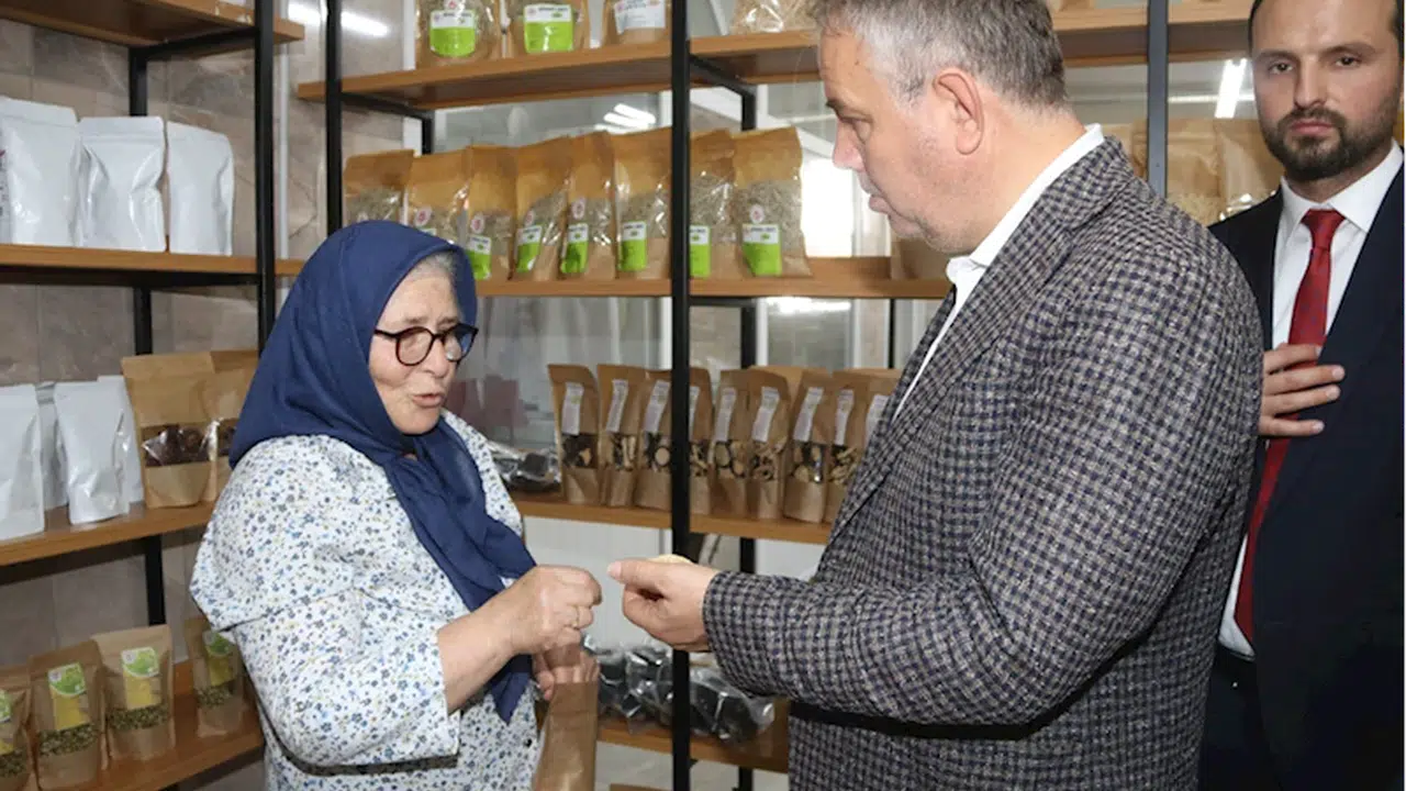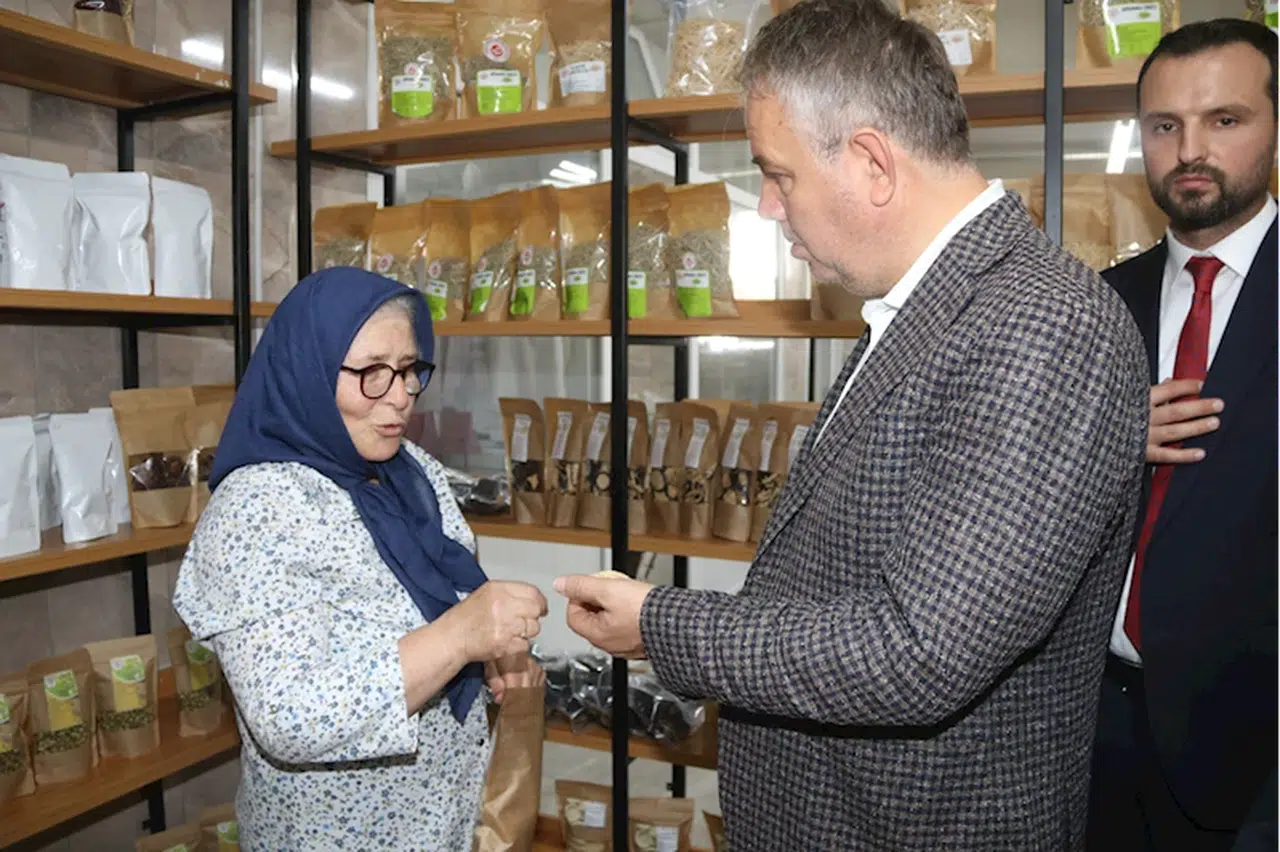 Kooperatif Başkanı Özlem Genç'ten kooperatif hakkında bilgiler alan Alparslan, üretici kadınlarla bir süre sohbet etti.