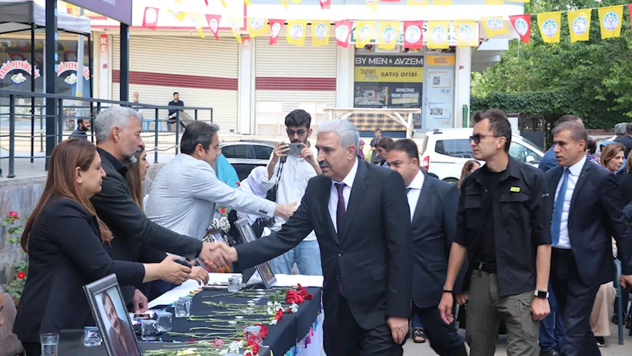 Gıyasettin TETİK-Seyfettin EKEN/DİYARBAKIR), (DHA)- AK Parti Diyarbakır İl Başkanı Ömer İler, Sırrı Süreyya Önder’in vefatının ardından DEM Parti İl Başkanlığı’nda kurulan taziyeye katıldı, baş sağlığı dileklerinde bulundu.