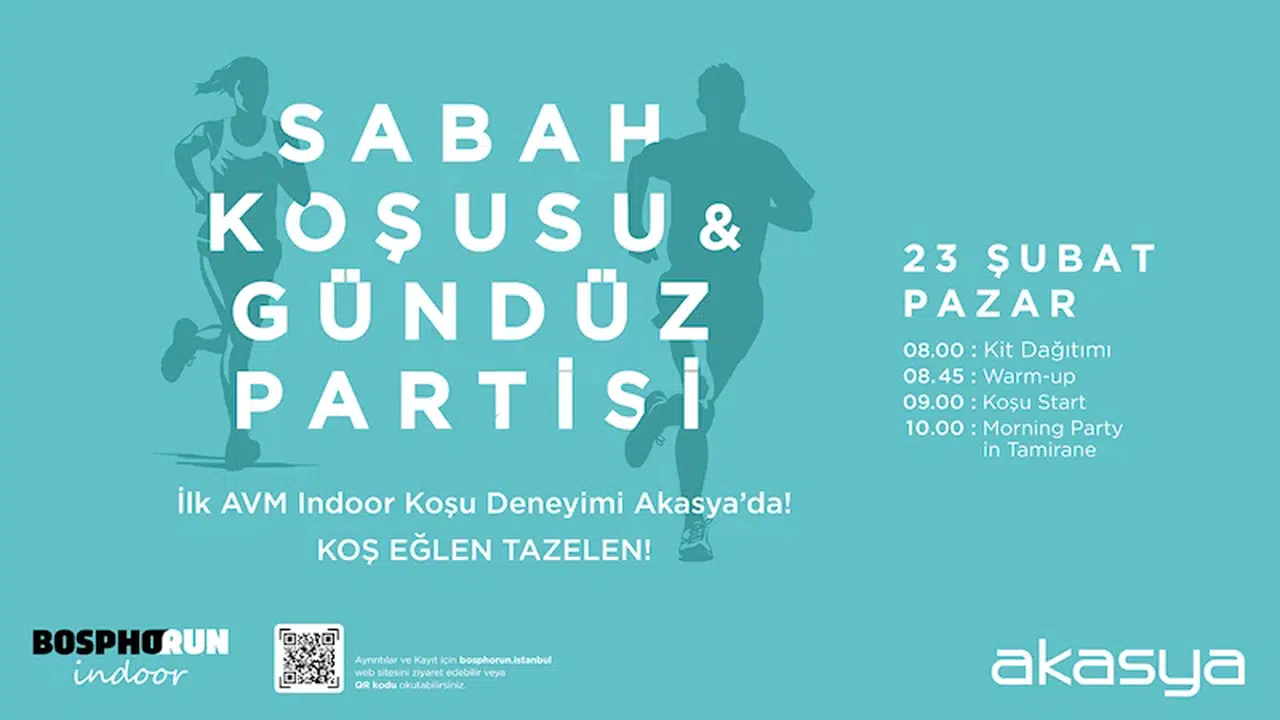 “23 Şubat sabahı, Akasya açılmadan önce, zemin katta gerçekleşecek etkinlikte koşu grupları toplamda 30 dakikalık bir koşu gerçekleştirecek. Katılımcılar, 08.00’de başlayacak kit dağıtımı ile hazırlıklarını tamamlayacak, ardından 08.45’te ısınma seansı ile koşuya hazırlanacak. Saat 09.00 itibarıyla start verilecek ve katılımcılar, farklı bir ortamda spor yapmanın keyfini yaşayacak. Koşunun ardından, Akasya’nın sevilen mekanlarından Tamirane’de düzenlenecek Morning Party ile güne enerjik bir başlangıç yapılacak. Giderek popülerleşen gündüz partilerinin en keyifli örneklerinden biri olan bu etkinlikte, katılımcılar DJ performansı eşliğinde müziğin tadını çıkaracak. Ayrıca, etkinlikte sürpriz hediyeler de olacak."
