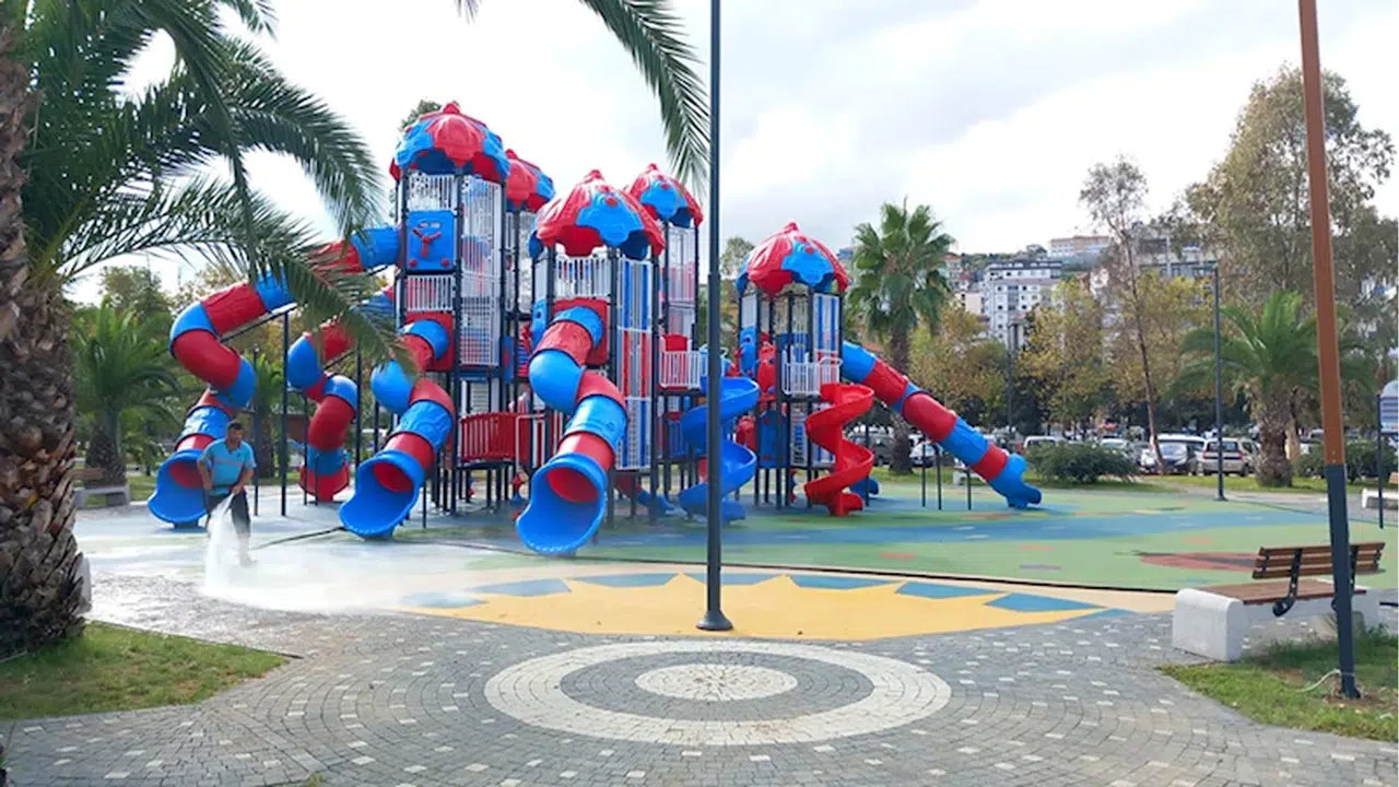 TRABZON (AA) - Trabzon'un Akçaabat ilçesindeki oyun parkları belediye ekiplerince dezenfekte edildi.