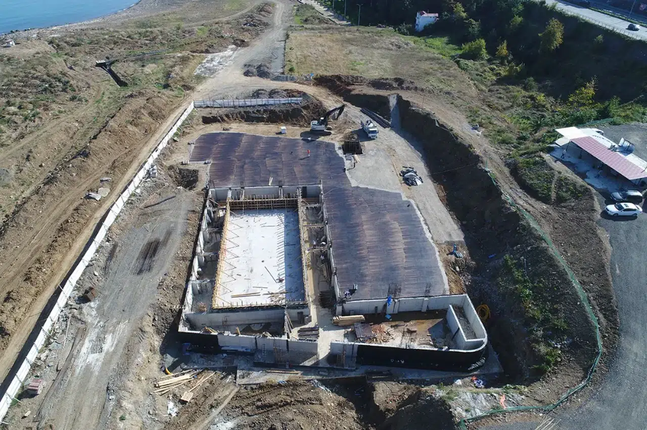 Akçaabat Belediyesi tarafından Yaylacık Sahilinde yapılan Yarı Olimpik Kapalı Yüzme Havuzu inşaatı, şekilleniyor.
