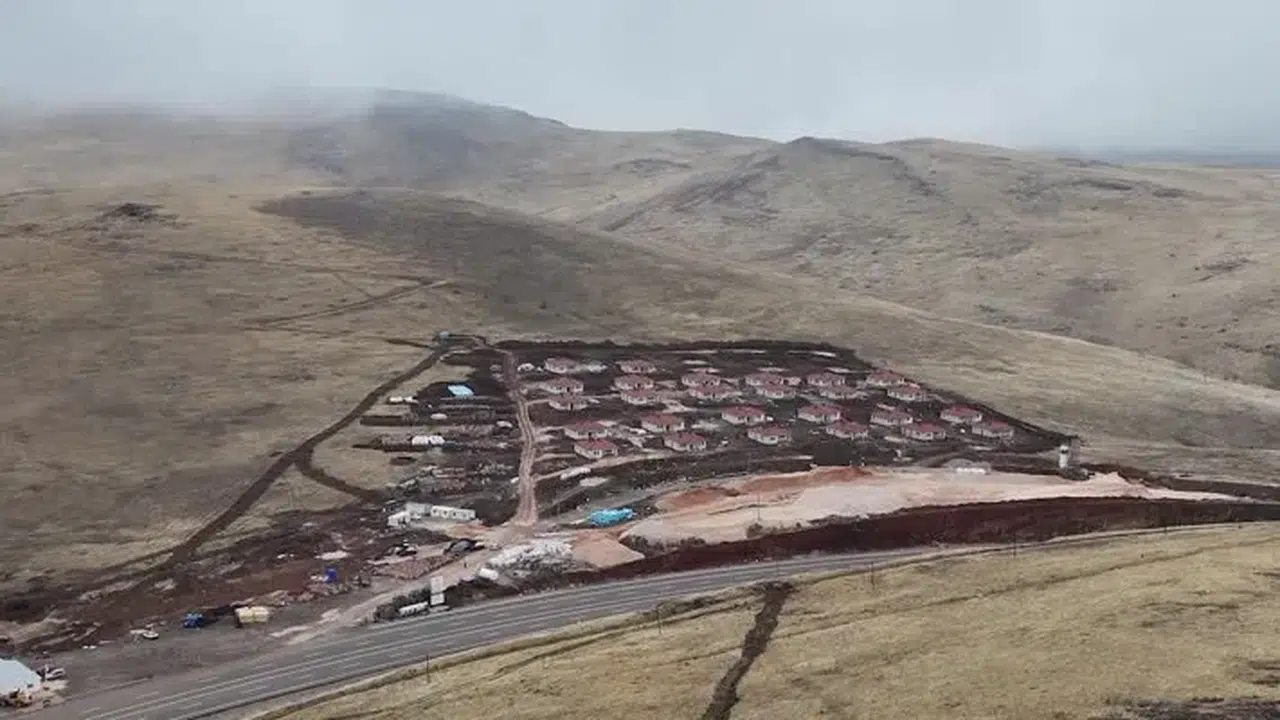 "Burası 1800 rakımlı Çayırdüzü mevkisi. Yaklaşık 130 kişilik ekiple aşırı soğuk, kar ve yağmura rağmen çalışmalarımıza devam ediyoruz. Burada köy tipi evler için 136 ahır yapılması planlanıyor. D300 kara yolunun sağında ve solunda iki mahalle inşa ediyoruz. Zemin çok sert ve kayalık. İster istemez zorlanıyoruz. Darıca Mahallesi'nde 54 köy tipi evin 26'sı teslime hazır hale geldi. Hemen yolun sonundaki Kozluca Mahallesi'nde 314 köy tipi evin 30'u da teslime hazır. Genel olarak inşaatların yüzde 60'ı tamamlanmış durumda. İnşallah ilkbaharda konutlarımızın tamamını teslim etmiş olacağız."