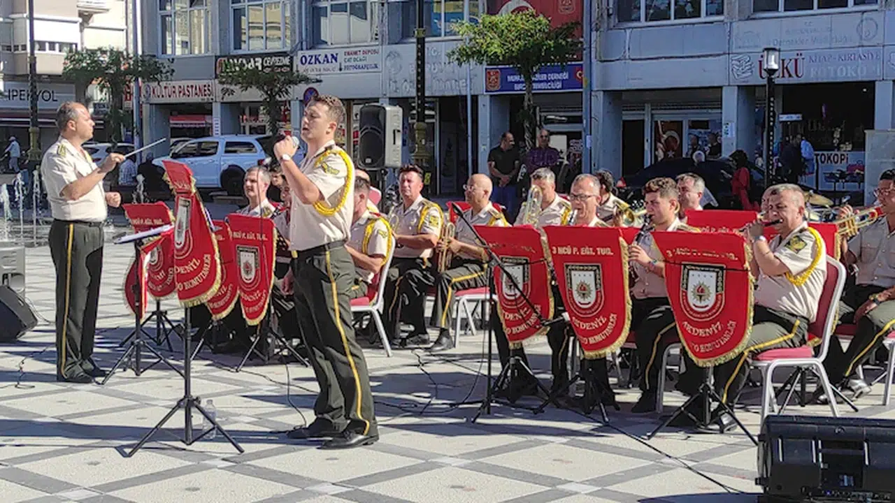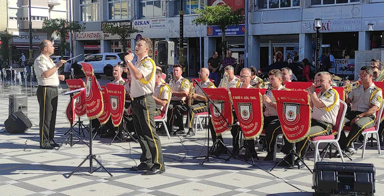 Cumhuriyetin kuruluşunun 100'üncü yılı kutlama etkinlikleri çerçevesinde kente gelen Antalya 3'üncü Piyade Tugay Komutanlığı Bölge Bandosu, Burdur Cumhuriyet Meydanı'nda konser verdi. Yarbay Mustafa Tunçbilek yönetimindeki milli marşları seslendiren bandonun konserini Muharip Gaziler Derneği İl Temsilcisi Hasan Okyar, gaziler ve vatandaşlar ilgiyle izledi. Vatandaşlar ellerindeki Türk bayrakları ile söylenen şarkılara eşlik etti. (DHA)