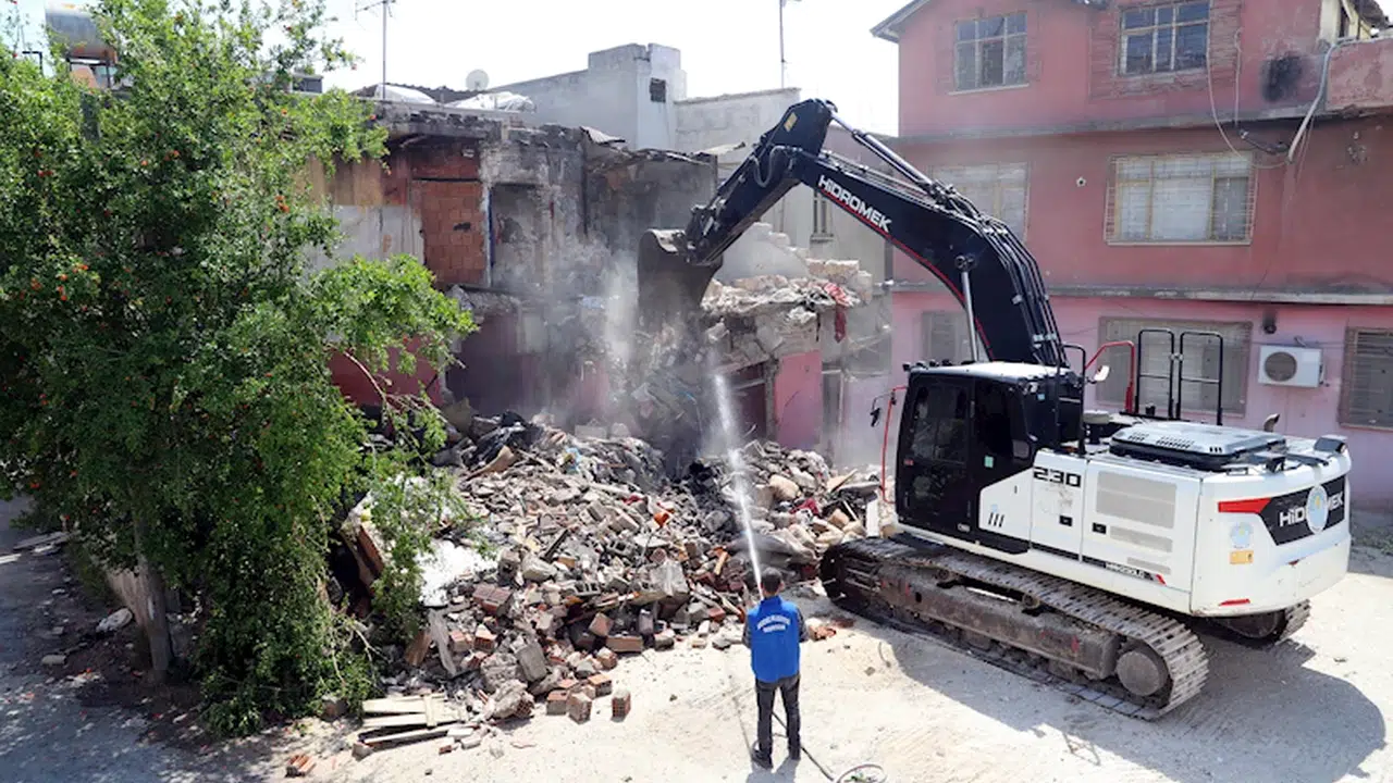 MERSİN, (DHA)-AKDENİZ Belediyesi, Bahçe Mahallesi’nde terk edilmiş 2 katlı yapıyı, yasal prosedürlerin tamamlanmasının ardından kontrollü şekilde yıktı.