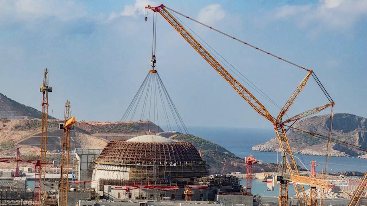 Akkuyu Nükleer Güç Santrali’nde (NGS) 1’inci Güç Ünitesinin dış koruma kabuğunun alt kubbe kısmı monte edildi. Büyük boyutlu metal yapının 63 metre yüksekliğe montajı 10 saat sürdü. Birleştirilmiş parçanın ağırlığı 340 ton ve çapı 50,8 metreydi.