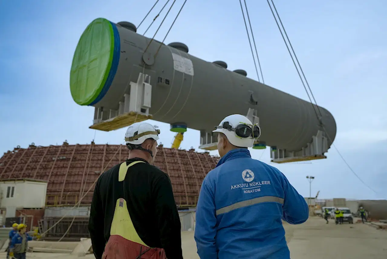 Akkuyu Nükleer A.Ş Genel Müdürü Sergei Butckikh, "Akkuyu NGS'nin 3'üncü Güç Ünitesi'ne ait türbin tesisinin ana ekipmanlarının montajına yönelik olarak makine dairesini kademeli şekilde hazırlıyoruz. Bina zemininden 18,2 metre yükseklikte yer alan ana teknolojik kot, ağır ekipmanların yükünü taşıyabilecek duruma getirildi. Bu nedenle, Besleme Suyu Depolama Tankı, Doğu Kargo Terminali'nde yapılan boşaltmanın ve gerekli gümrük işlemlerinin ardından doğrudan türbin binasına taşındı. Özel destek yapıların montajının ardından, uzman ekip tankı nihai konumuna yerleştirerek tank gövdesinin iki parçasını kaynakla birleştirecek. Aynı anda makine dairesinin duvarlarının betonlama çalışmaları da devam ediyor" dedi.
