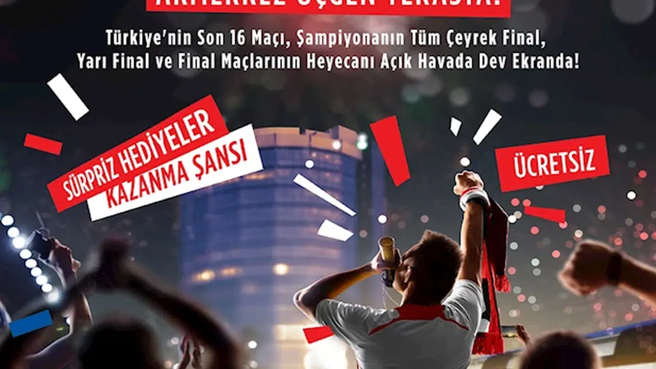 Akmerkez Üçgen Teras’ ta 13 gün boyunca bir dizi etkinliğe ev sahipliği yapacak. 2 Temmuz’dan 14 Temmuz’a kadar sürecek olan etkinliklerde, Euro 2024 maçları Üçgen Teras’ ta dev ekranda canlı olarak izlenebilecek. Üçgen Teras’taki Euro 2024 heyecanı, 2 Temmuz’da A Milli Takımı saat 22.00’de Avusturya ile karşı karşıya gelecek. 5 Temmuz ve 6 Temmuz akşamları ise Euro 2024 Çeyrek Final maçlarının heyecanı yine Üçgen Teras’ta yaşanacak. 9 Temmuz ve 10 Temmuz akşamları Euro 2024 Yarı Final mücadelelerine tanıklık edecek Akmerkez misafirleri, 14 Temmuz akşamında ise Euro 2024 Final maçını ücretsiz olarak izleyebilecek. Euro 2024 heyecanına ortak olanlar, çeşitli etkinliklerle birbirinden çeşitli hediyeler kazanma şansı da bulacak.