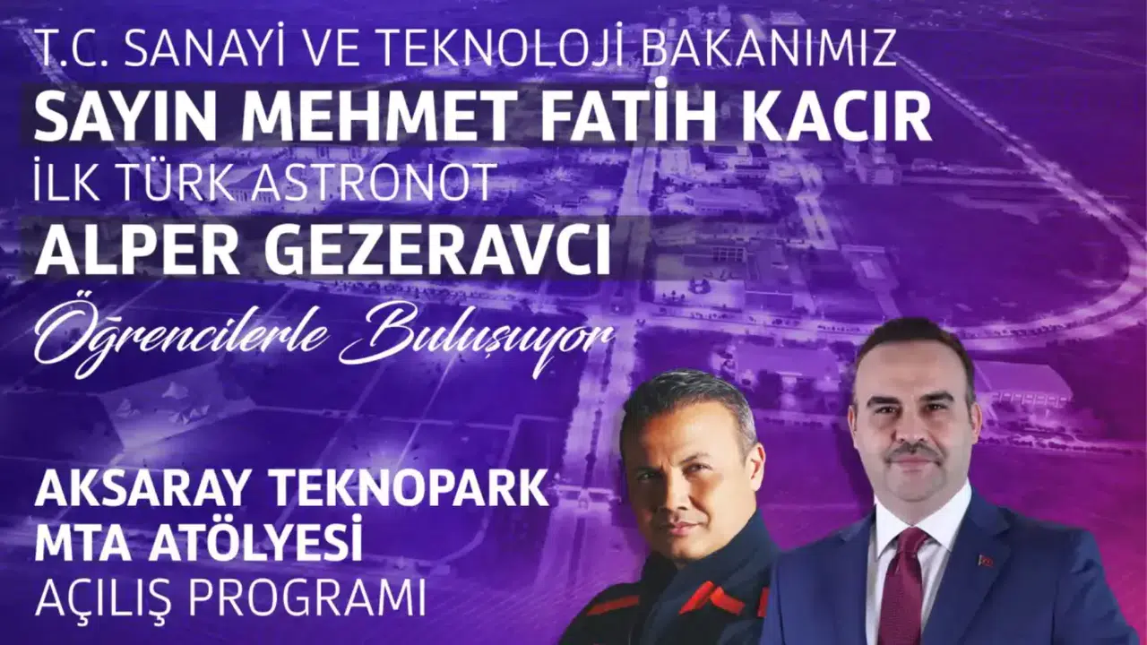 Teknoloji ve inovasyonda yeni adım Sanayi ve Teknoloji Bakanı Mehmet Fatih Kacır’ın katılımıyla, Aksaray Teknopark ve Milli Teknoloji Atölyesi 10 Mart 2026 tarihinde düzenlenecek törenle açılacak. Açılış, kentte teknoloji, girişimcilik ve yerli üretim ekosistemine önemli katkı sağlayacak. Uzay deneyimleri Aksaray’da paylaşılacak Açılış kapsamında, Türkiye’nin uzaya gönderdiği ilk astronot Alper Gezeravcı, Aksaray Üniversitesi Konferans Salonu’nda bir söyleşi gerçekleştirecek. Gezeravcı, uzay yolculuğu deneyimlerini ve Türkiye’nin uzay çalışmalarını katılımcılarla paylaşacak. Etkinliğe davetlisiniz Aksaray Üniversitesi ailesi ve tüm Aksaraylılar etkinliğe davetli.