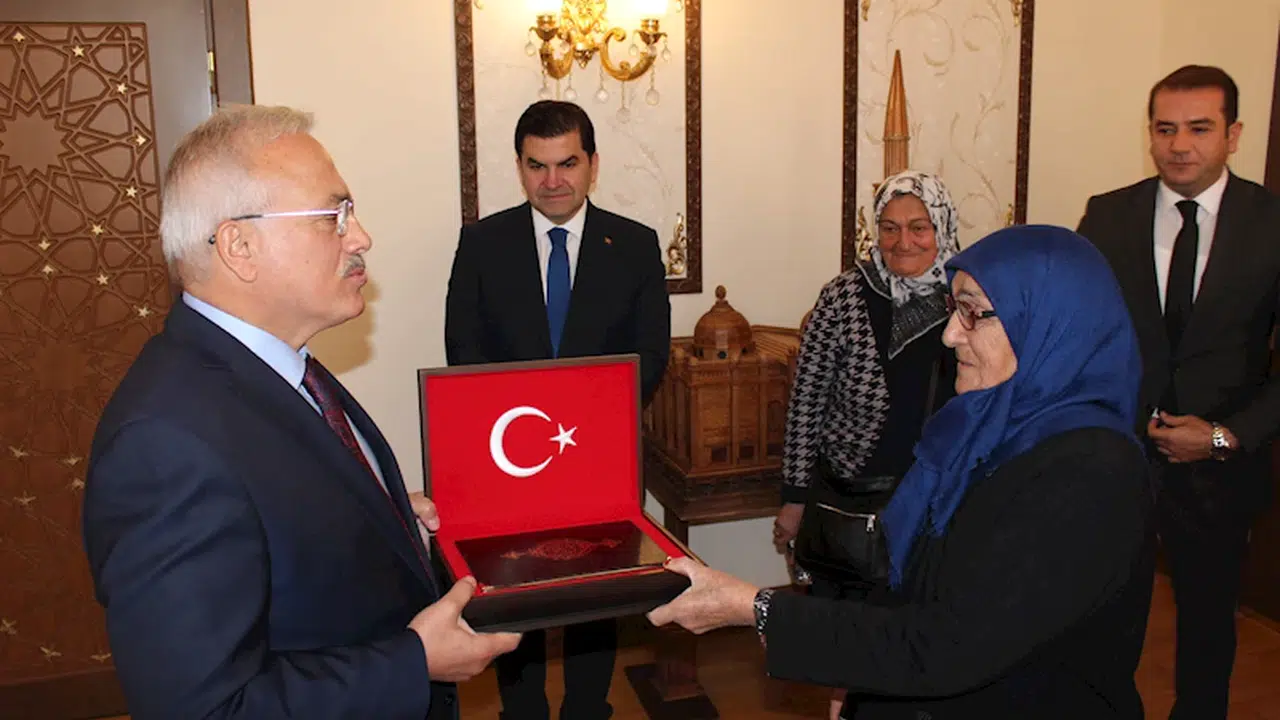 Erkan ALTUNTAŞ/AKSARAY,(DHA)-AKSARAY Valisi Mehmet Ali Kumbuzoğlu, 29 Ekim Cumhuriyet Bayramı nedeniyle bir iş yerinin önüne asılan Türk bayrağını görünce öpen bastonlu Fadimana Altın'a (75), Kur'an-ı Kerim ve Türk bayrağı hediye etti. Vali Kumbuzoğlu, "Bizlere Çanakkale Savaşı'nda, Kurtuluş Savaşı'nda kahramanca savaşan, kahramanca savaşın yükünü taşıyan yüce kadınlarımızı hatırlattı ve kendisine çok minnettarız" dedi.