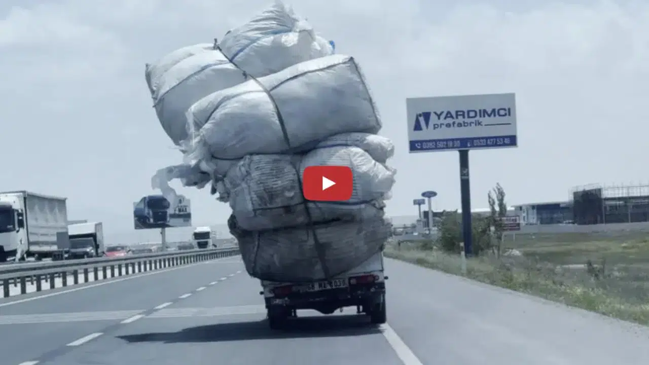 Ağırlığının neredeyse 3 katı yüklenen kamyoneti seyir halinde gören sürücüler şoke oldu.