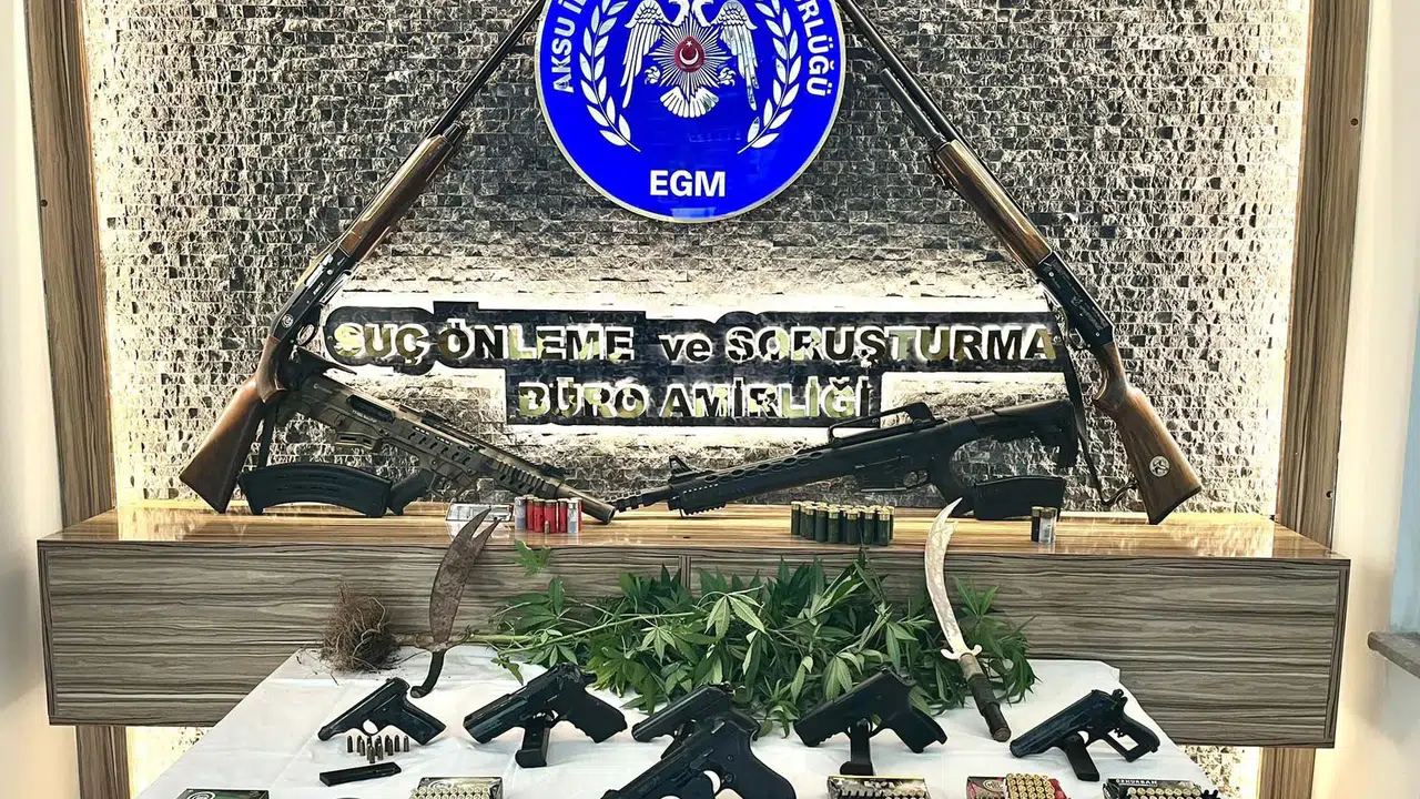 Aksu İlçe Emniyet Müdürlüğü ekiplerince ekiplerince, 210 personelin katılımıyla kamu düzeni ve güvenliğinin sağlanması, suçların önlenmesi ve meydana gelen olayların aydınlatılması amacıyla eş zamanlı operasyon düzenlendi. Operasyonda, 6 ruhsatsız tabanca, 4 ruhsatsız tüfek, 191 fişek ve kartuş, 4 kesici- delici alet ile 60 santimetre boyunda toprağa ekili hint keneviri ele geçirildi. gerçekleştirilen operasyonda yakalanan 9 şüpheli hakkında adli işlem başlatıldı.