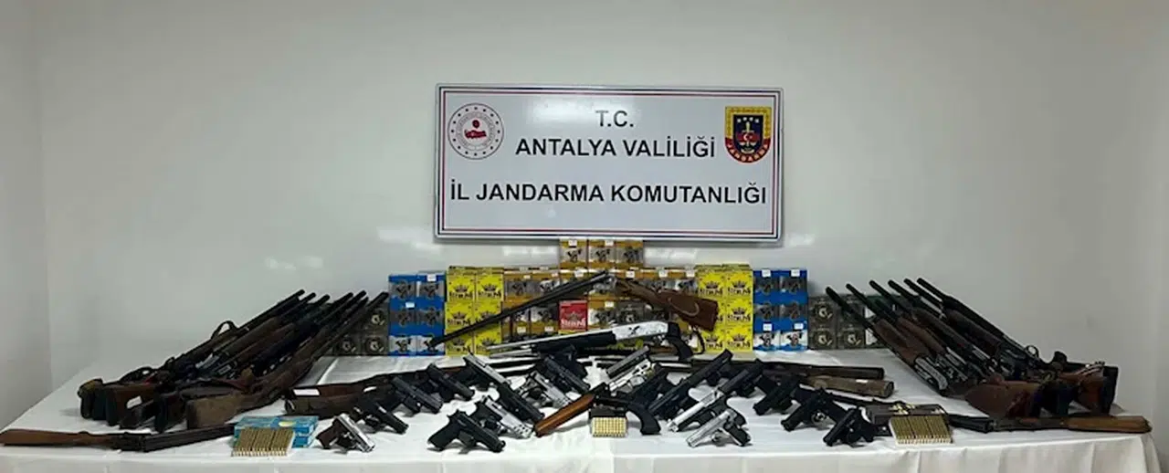 Antalya Cumhuriyet Başsavcılığı'nın talimatları doğrultusunda, Antalya İl Jandarma Kaçakçılık ve Organize Suçlarla Mücadele Şube Müdürlüğü ve Aksu İlçe Jandarma Komutanlığı ekipleri, ruhsatsız silah ve mühimmat bulunduran şüphelilere yönelik operasyon düzenledi. Operasyonda, 22 tabanca ve şarjör, 19 av tüfeği ve 6 bin 181 fişek ele geçirildi. Olayla ilgili 22 şüpheli hakkında adli soruşturma başlatıldı. (DHA)