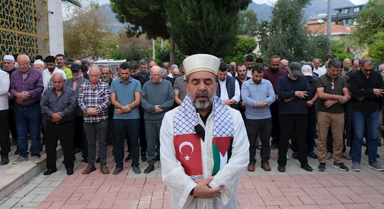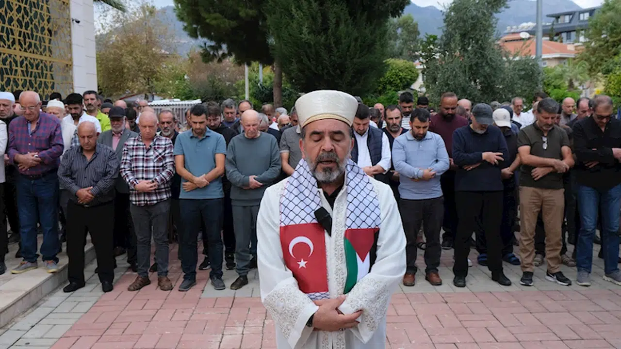 Alanya'da Dadaşlar Camii'nde cuma namazının ardından, İsrail'in Filistinlilere yönelik saldırılarında hayatını kaybedenler için gıyabi cenaze namazı kılındı. Etkinliğe katılanlardan bazıları Filistin bayrağı taşıdı. Anadolu Gençlik Derneği (AGD) Alanya Şubesi Basın Sözcüsü Zülfikar Devir, İsrail'in saldırılarında 45 bini aşkın kişinin hayatını kaybettiğini söyledi. Devir, “Dünyanın en büyük terör örgütü İsrail 400 günü aşkın bir süredir bütün dünyanın gözü önünde soykırımına devam etmektedir. İslam ülkelerinin liderleri somut adım atmayı değil kınamayı tercih ettiler. Zulümlere ve insanlık dışı saldırılara sessiz kalmayacağız. Her birimiz, bu zulmün son bulması için üzerimize düşen sorumluluğu yerine getirmekle mükellefiz" dedi. (DHA)