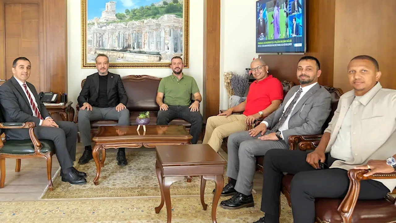 Teknik heyet ve yönetim, daha sonra Burdur Valisi Türker Öksüz'ü ziyaret ederek, 15 numaralı Antalyaspor forması hediye etti. (DHA)