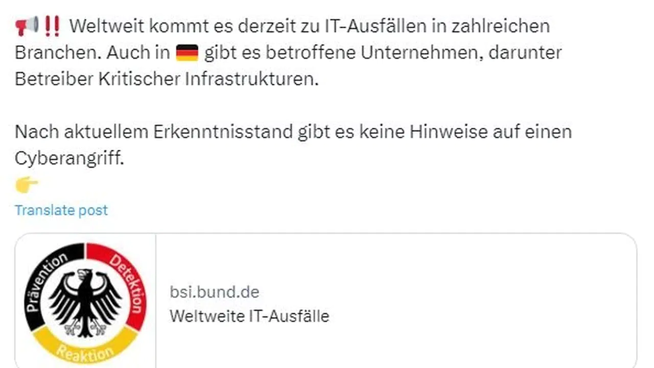 “Halihazırda dünya çapında çok sayıda sektörde BT kesintileri yaşanıyor. Kritik altyapıların operatörleri de dahil olmak üzere Almanya'da da etkilenen şirketler var.