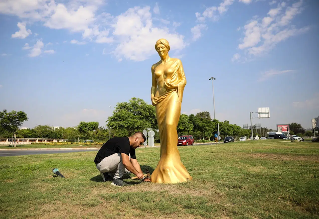Semih ERSÖZLER/ANTALYA, (DHA)- ANTALYA'da bu yıl 61'incisi düzenlenecek Altın Portakal Film Festivali'nin simgesi altın rengindeki 'Venüs' heykelleri, bakımları yapılarak kentin cadde ve kavşaklarını süslemeye başladı.