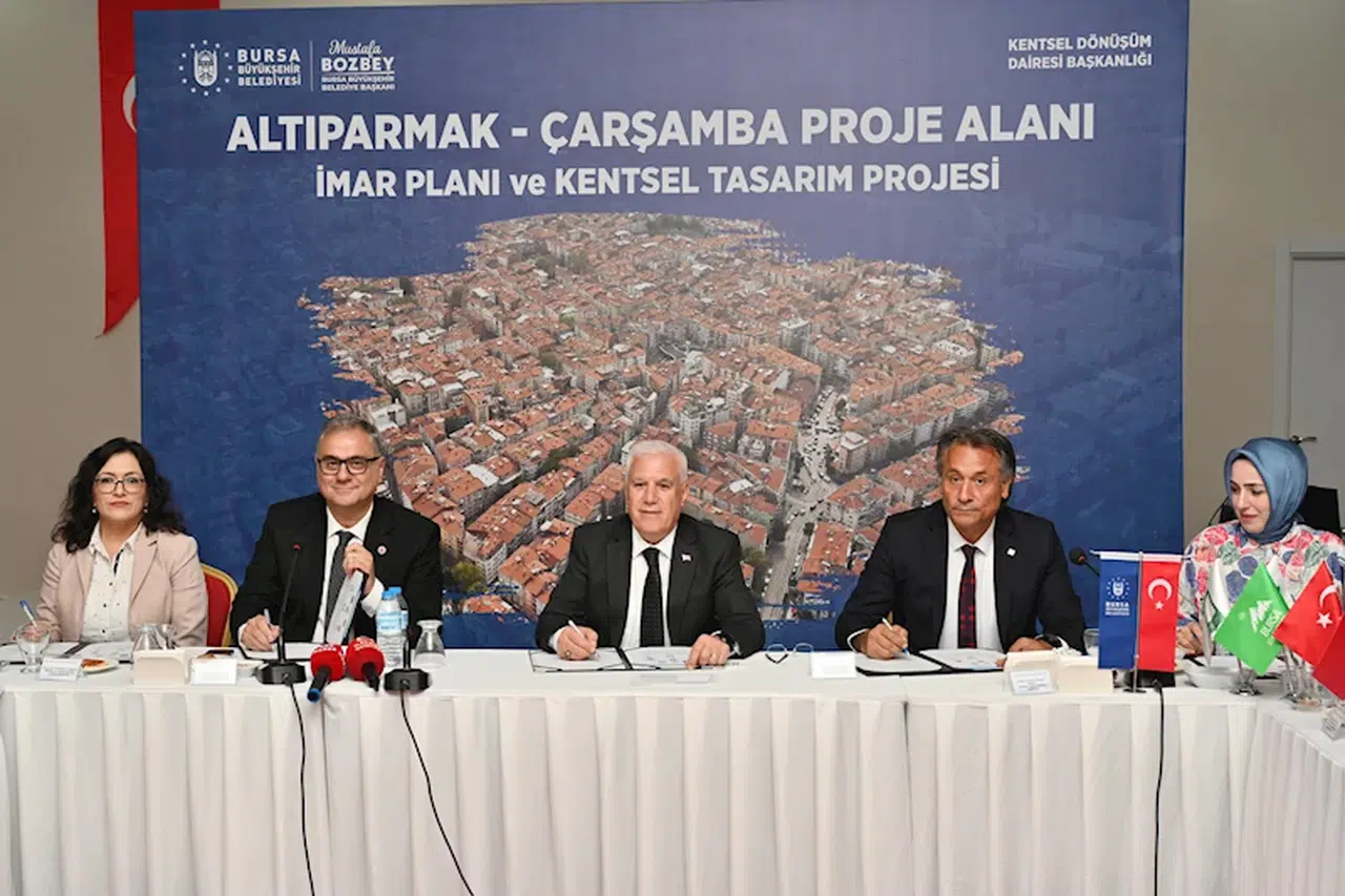 Gökhan ÖZHAN/BURSA, (DHA)-BURSA Büyükşehir Belediyesi, Altıparmak bölgesiyle ilgili imar ve kentsel tasarım projelerinin hazırlanması amacıyla, Osmangazi Belediyesi, ilgili akademik odalar ve Bursa Kent Konseyi ile iş birliği protokolü imzaladı. Protokolün 830 dönümlük alanı kapsadığını söyleyen Başkan Mustafa Bozbey, “Bölgenin, Bursa için öneminin bilincindeyiz ve meslek odalarımızla iş birliğine büyük önem veriyoruz” dedi.