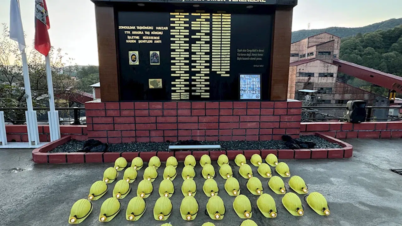 Bartın'ın Amasra ilçesindeki maden ocağında meydana gelen patlamada hayatını kaybeden işçiler için müessesedeki servis kuyusunun önünde anma töreni düzenlendi.