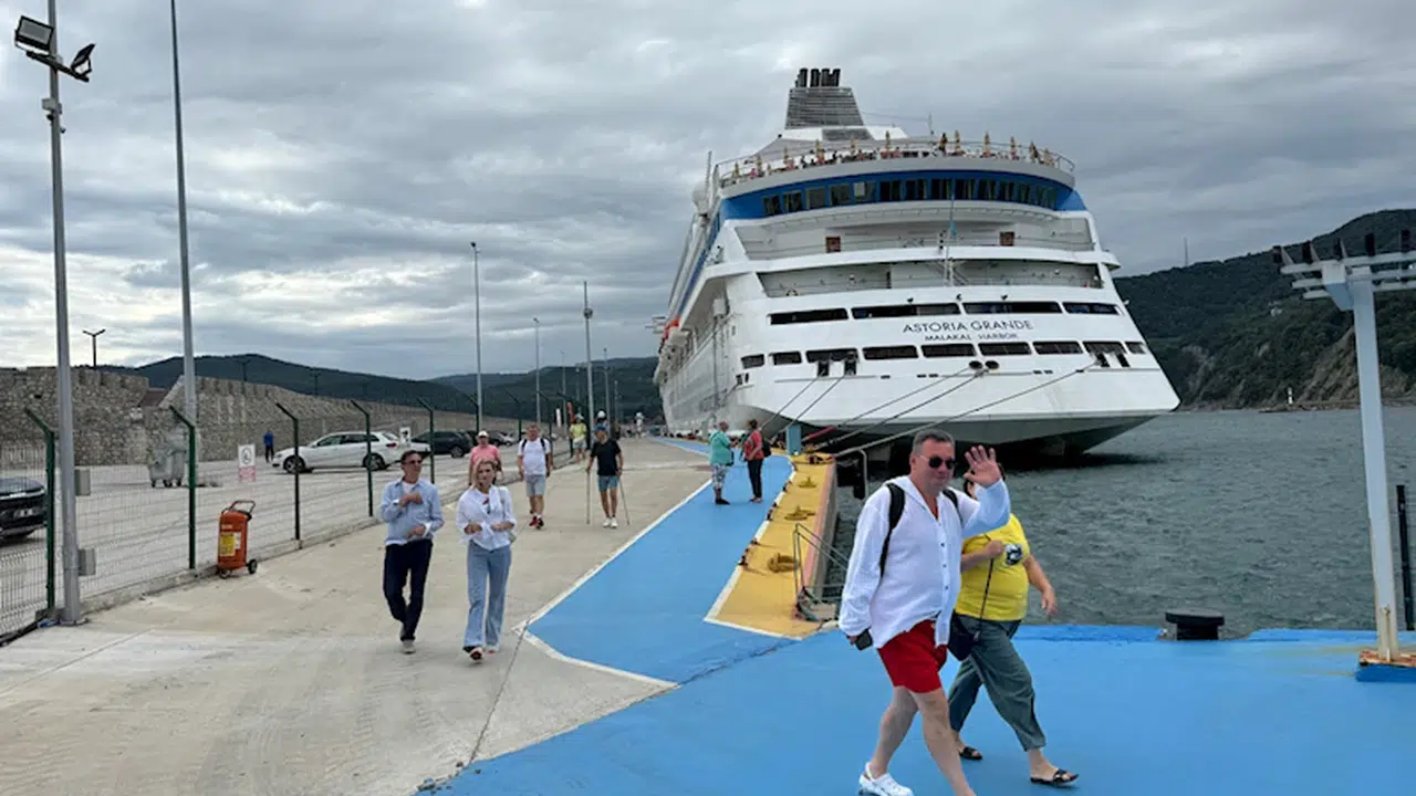 BARTIN (AA) - Rusya'nın Soçi kentinden hareket eden "Astoria Grande" adlı kruvaziyer, Amasra Limanı'na demirledi.