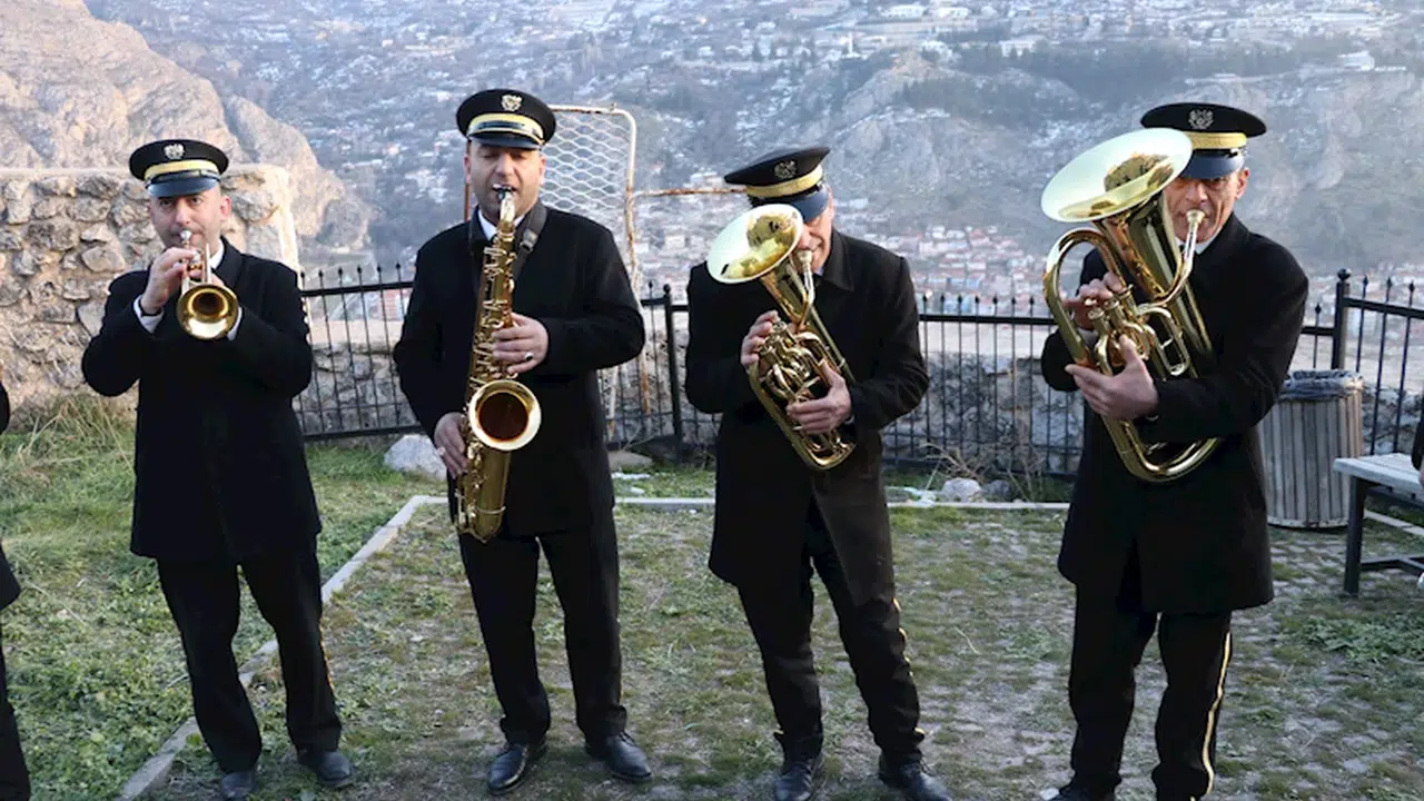Sinan HARMANCI/ AMASYA, (DHA)- AMASYA Belediye bandosu, 300 metre yükseklikteki Harşena Kalesi’nde, kent merkezinden duyulacak şekilde iftar öncesi konser verdi. 161 yıldır devam eden gelenekle, bando ekibi marşlar çaldı.